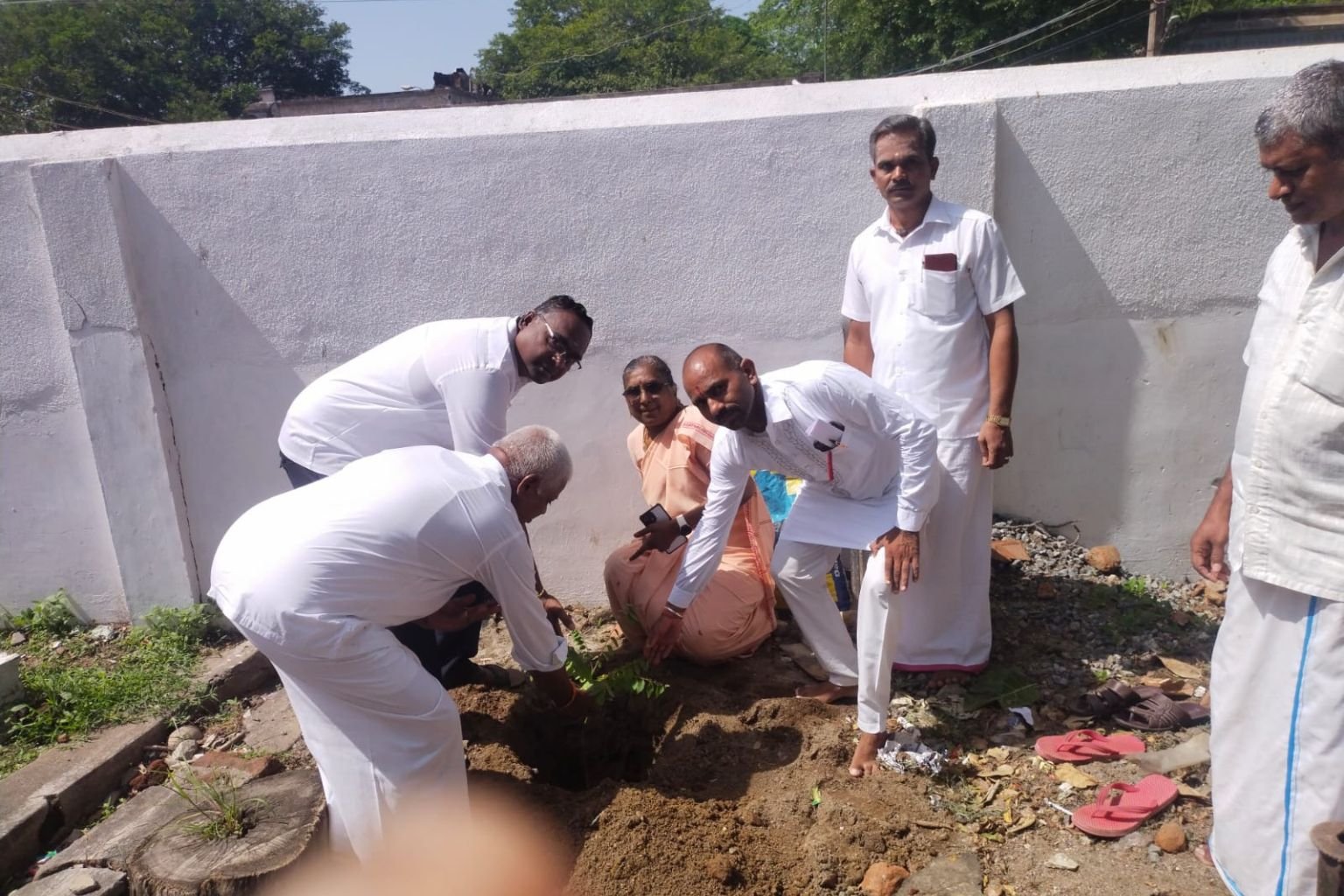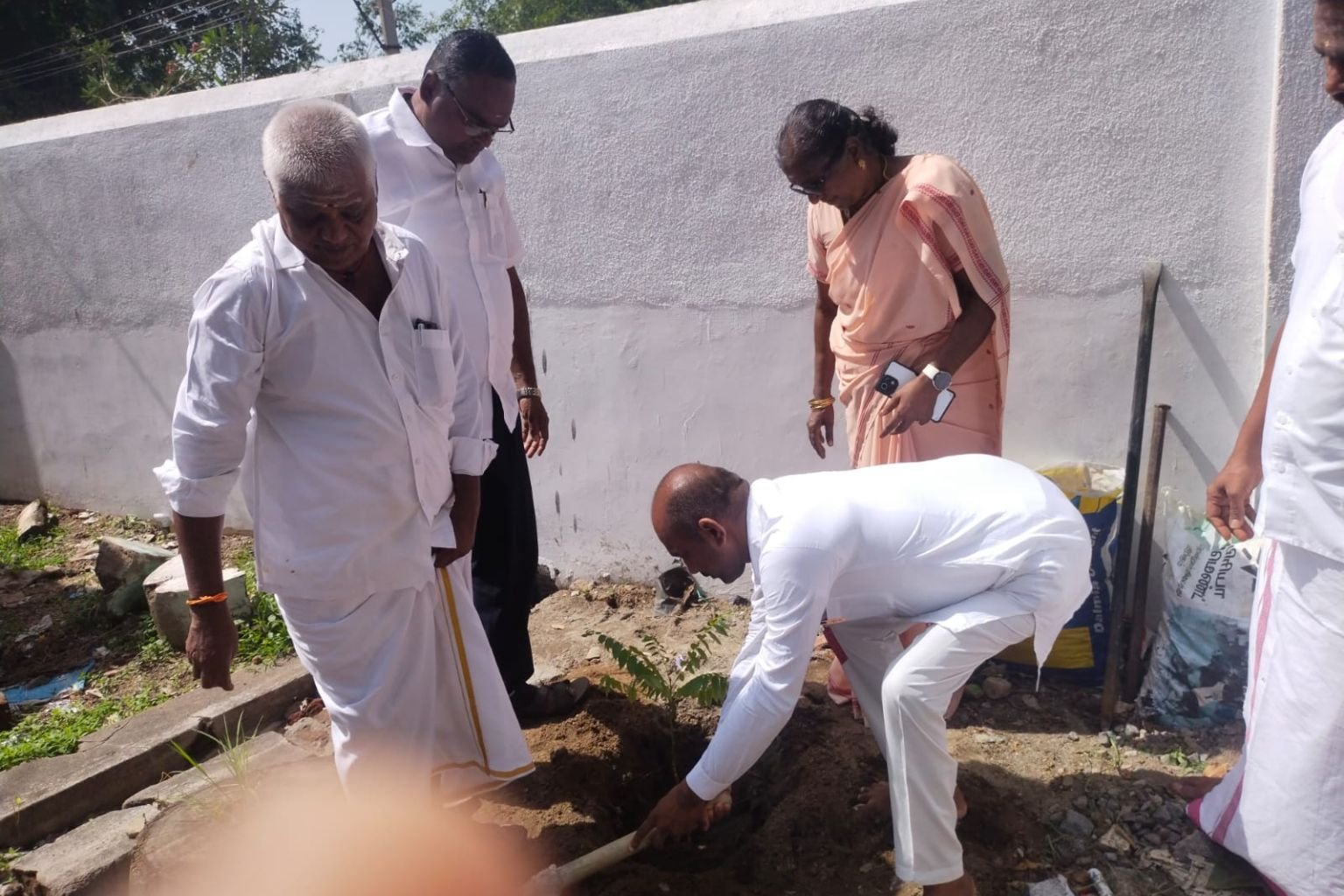 Panchayat Union Middle School Onnupuram, planting trees on International Yoga Day