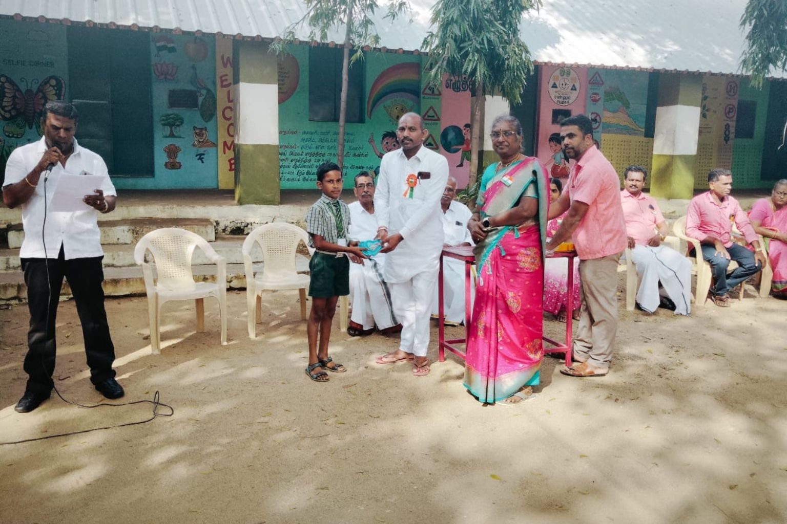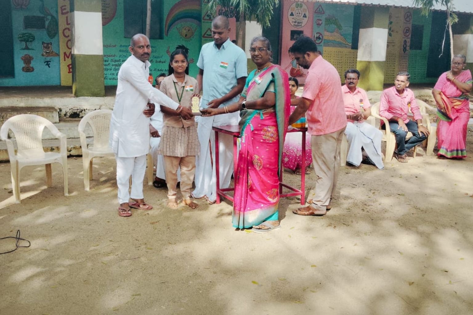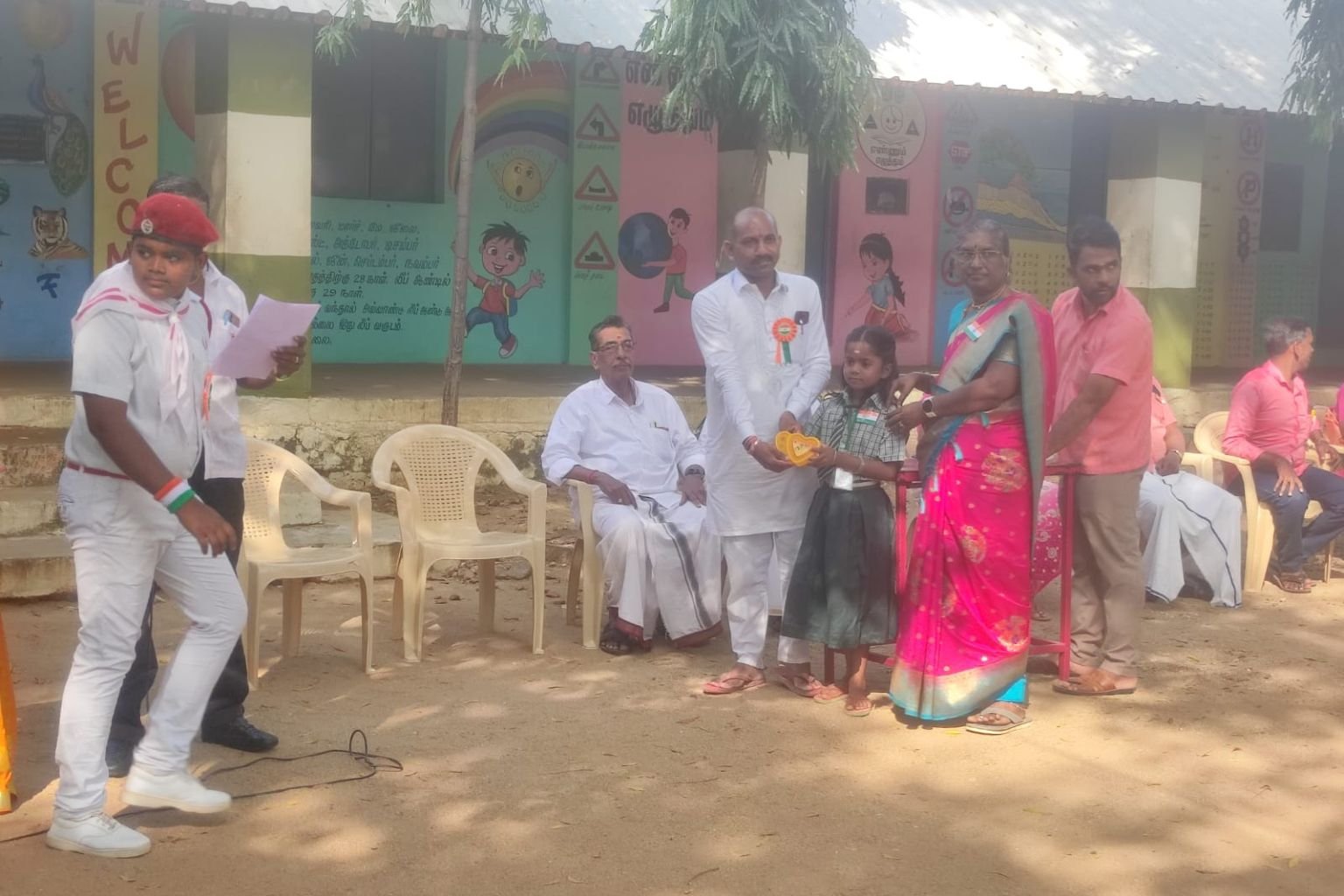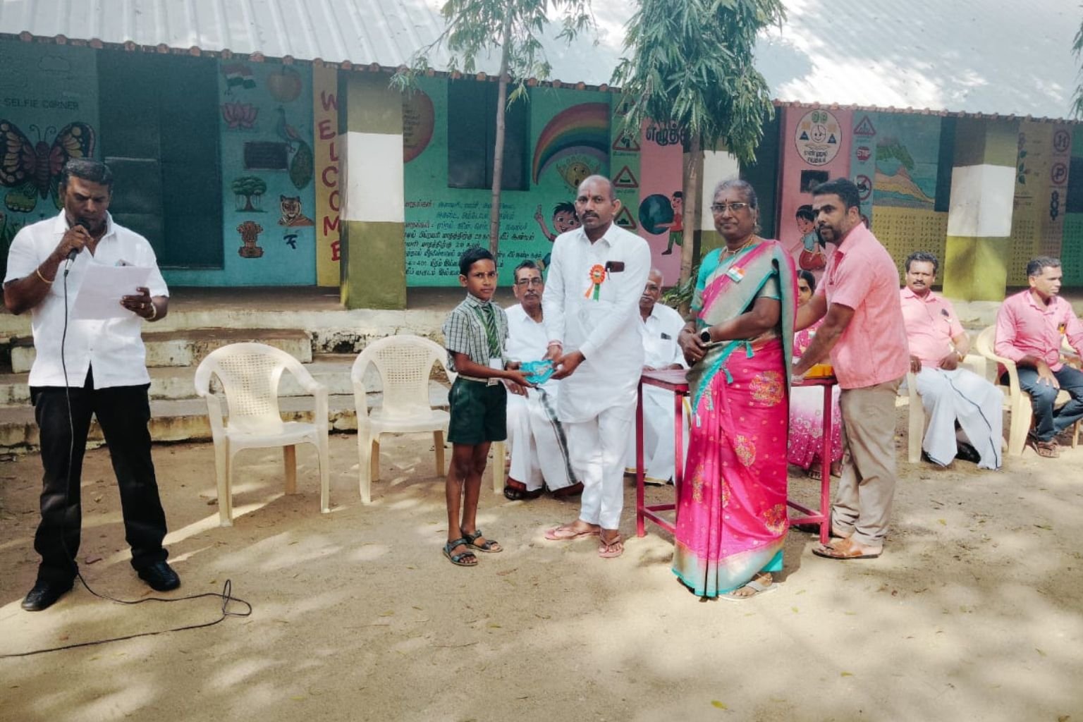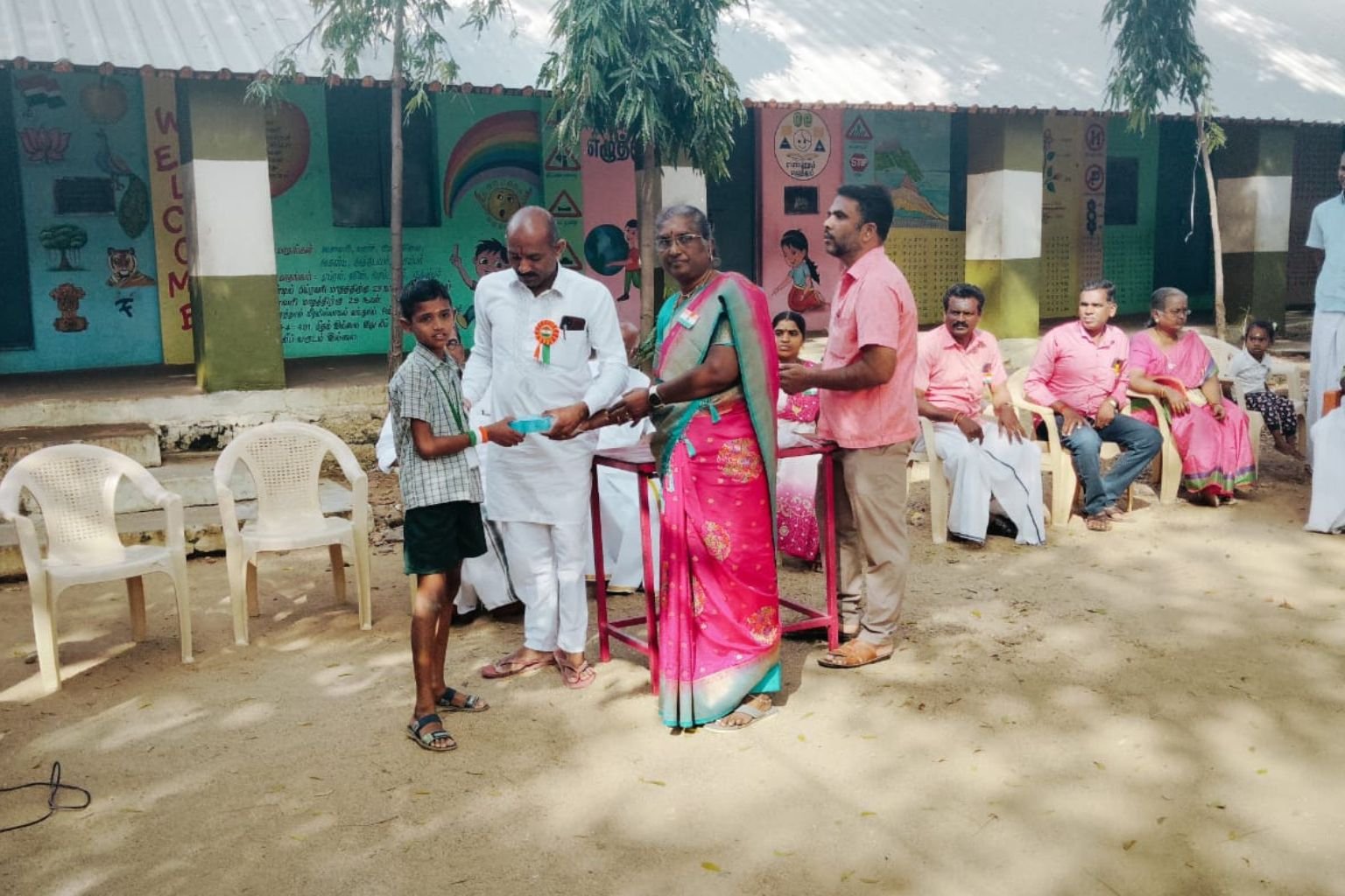 Distributing incentive gifts at Panchayat Union Middle School Onnupuram on 26th January 2024
