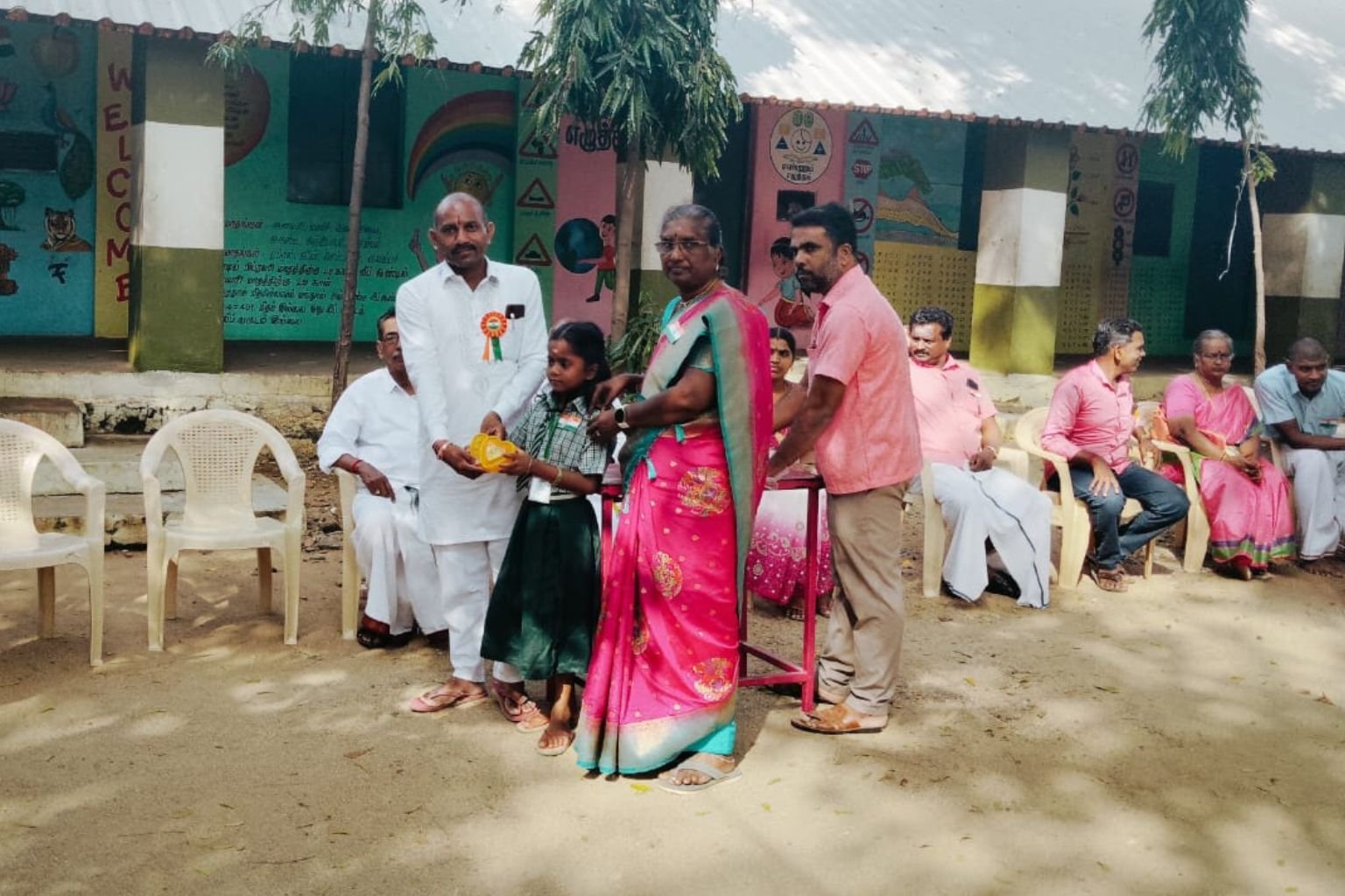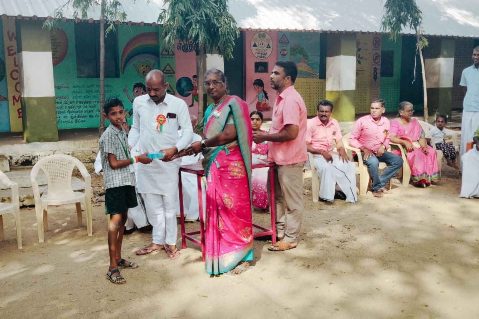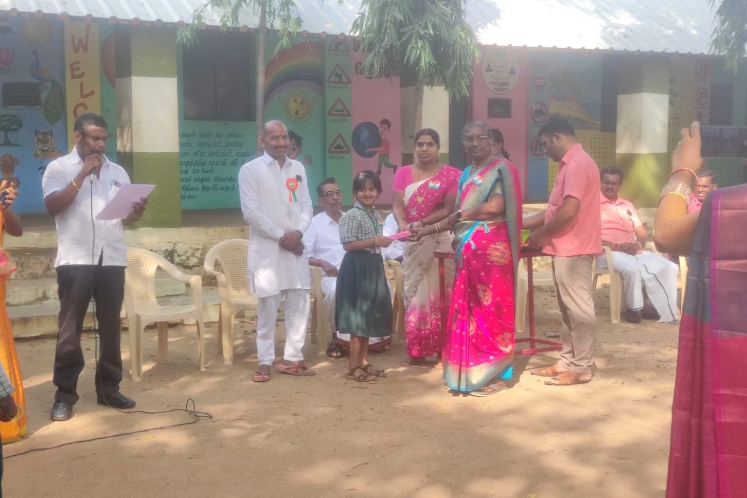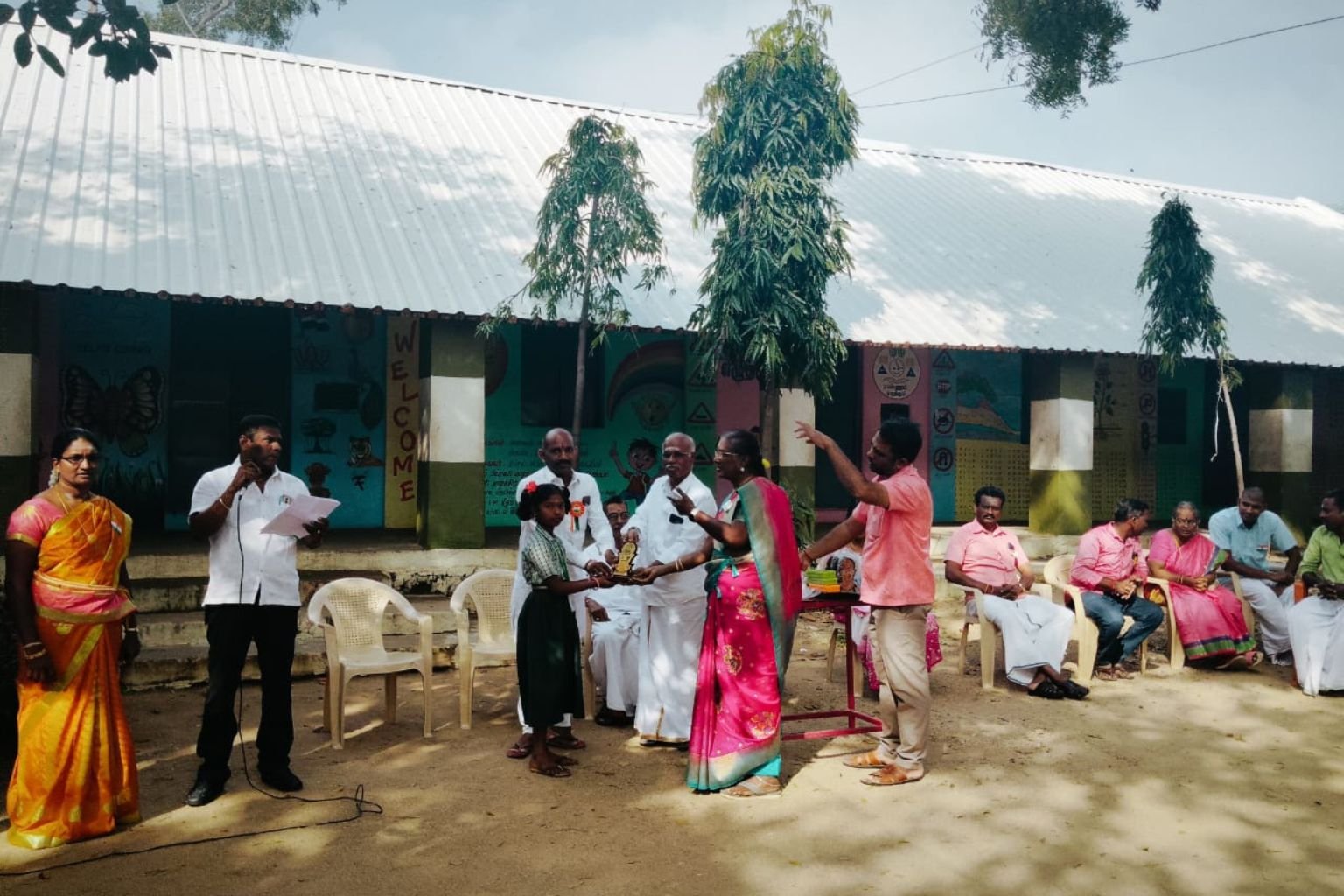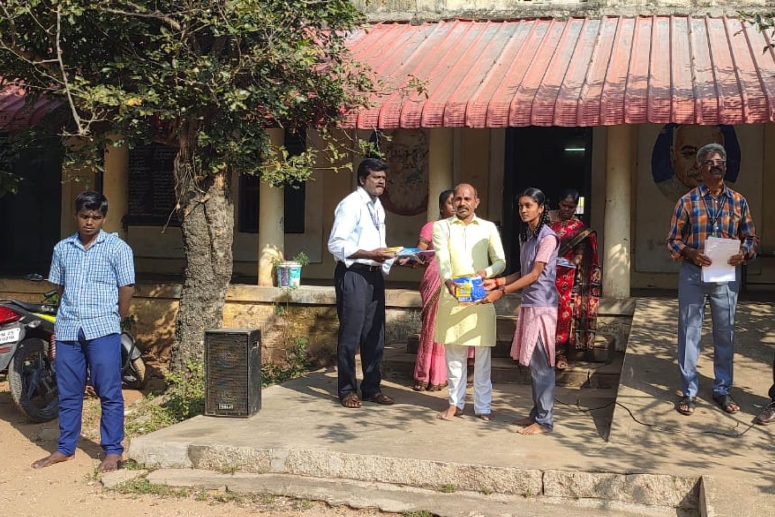 Distributing incentive gifts at Panchayat Union Middle School Onnupuram on 26th January 2024