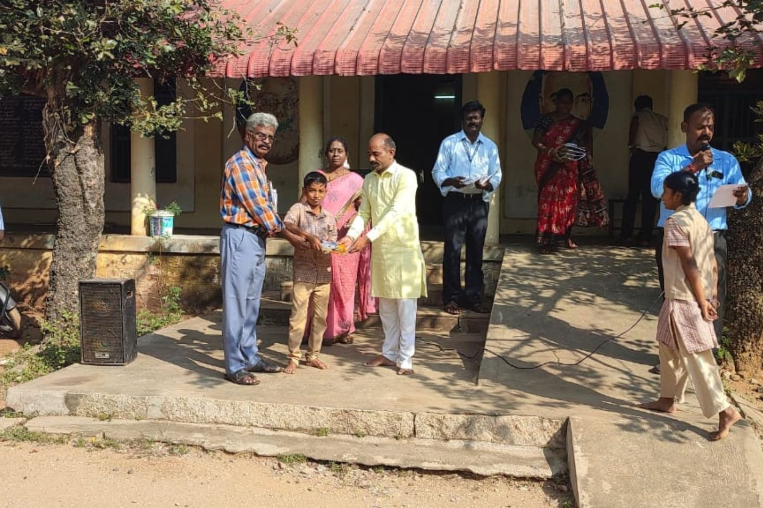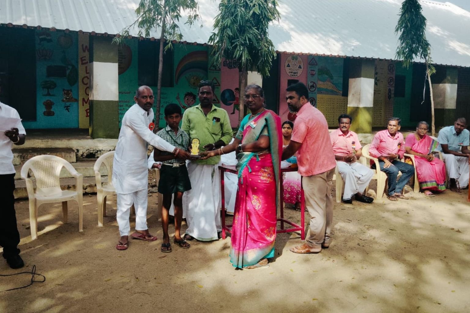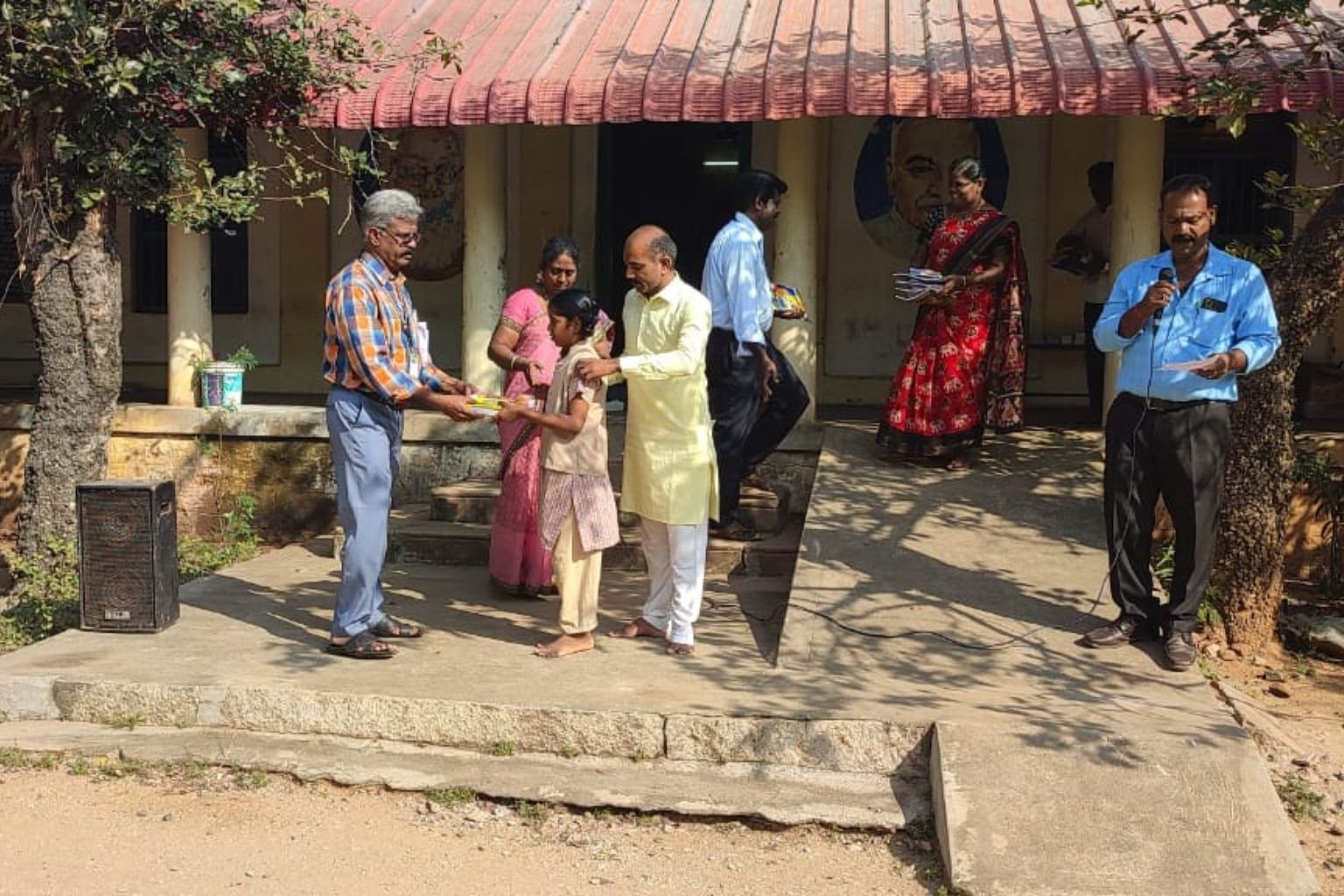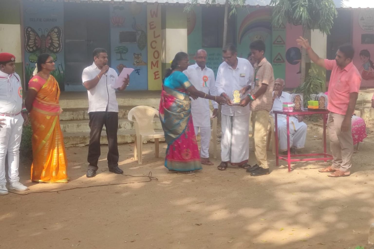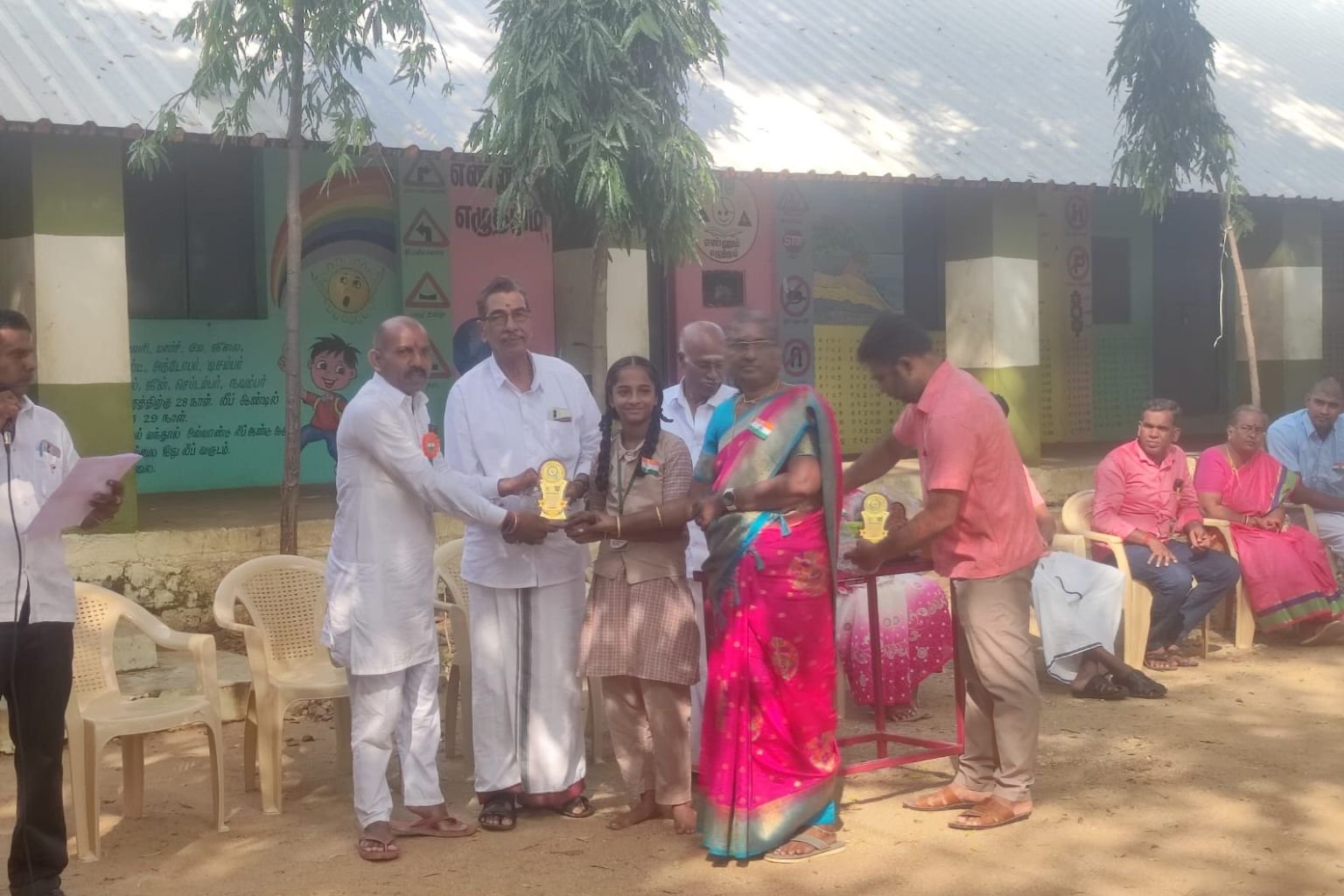 Distributing incentive gifts at Panchayat Union Middle School Onnupuram on 26th January 2024
