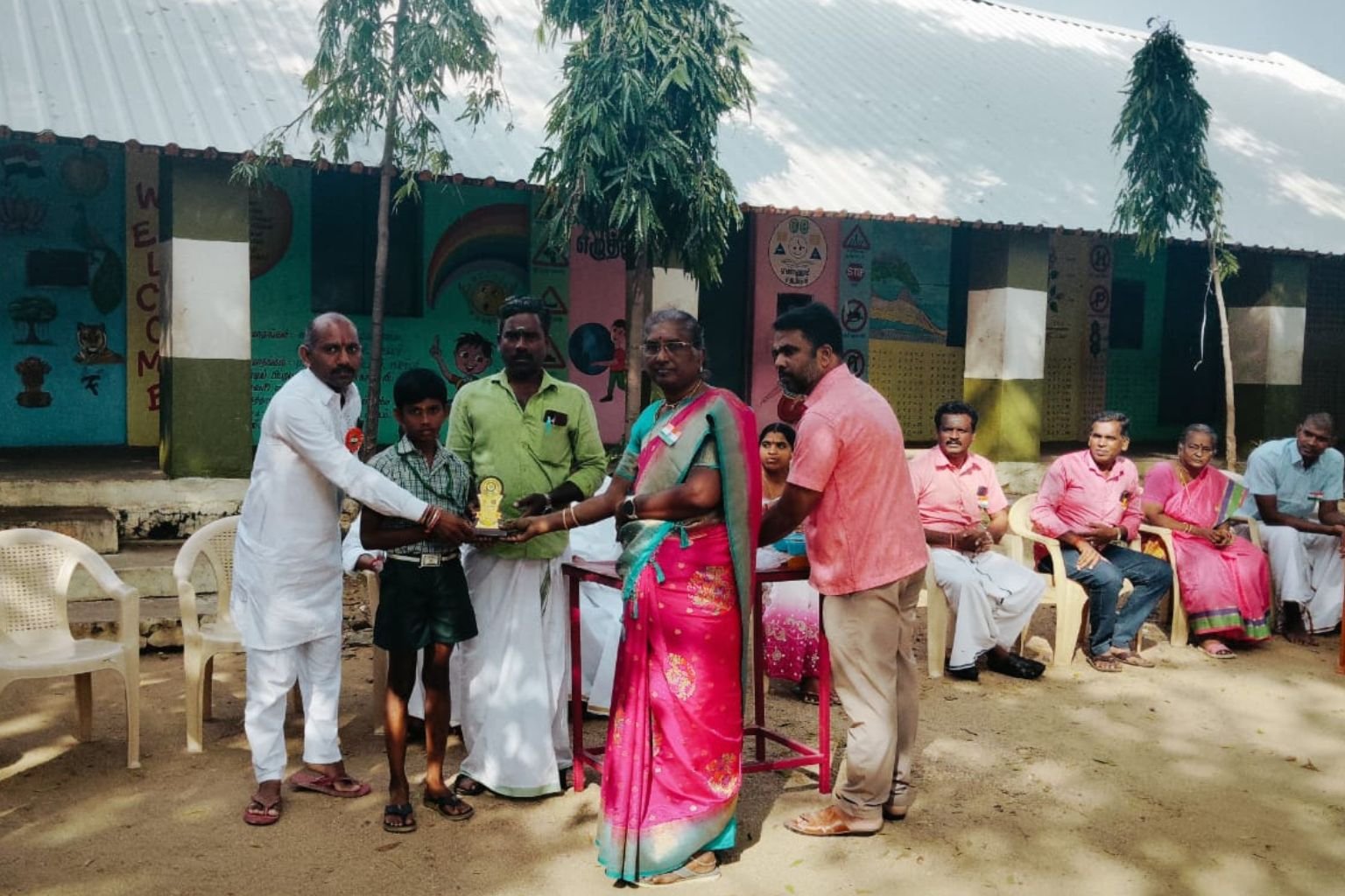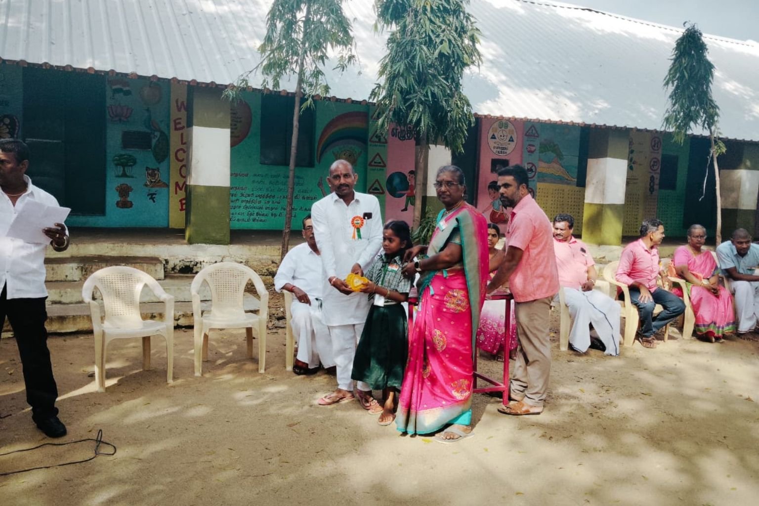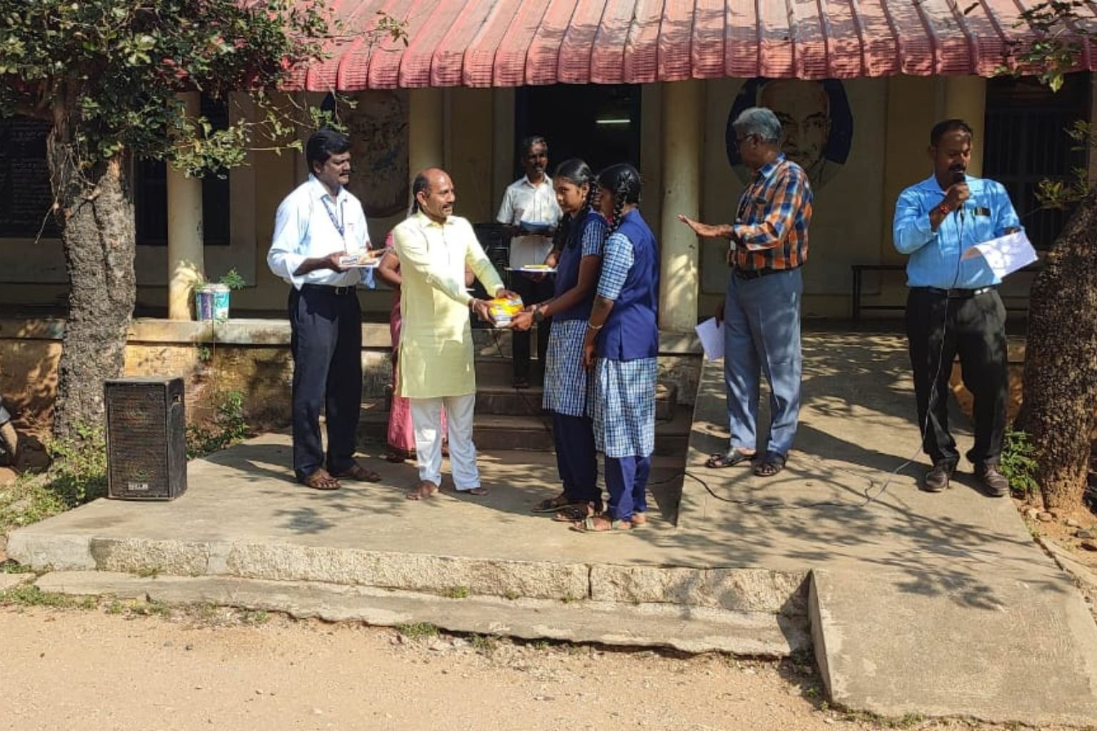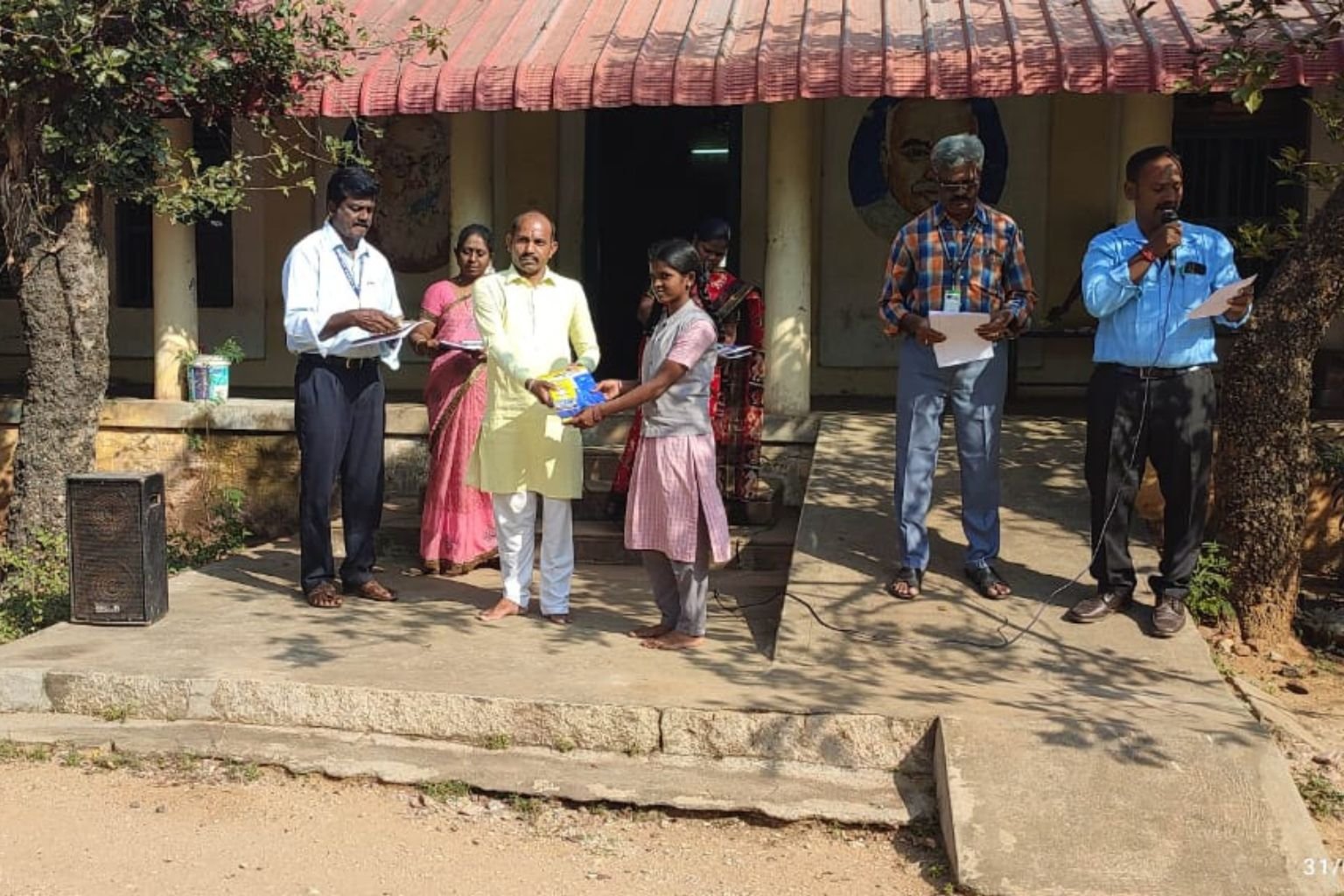 Distributing incentive gifts at Panchayat Union Middle School Onnupuram on 26th January 2024