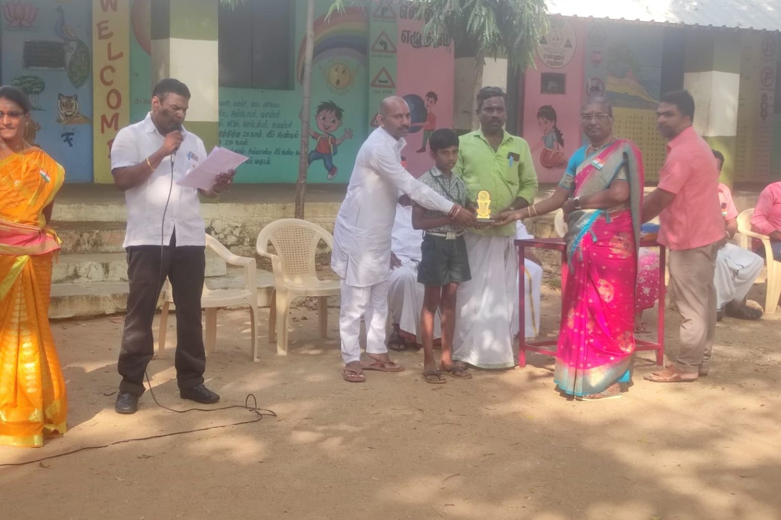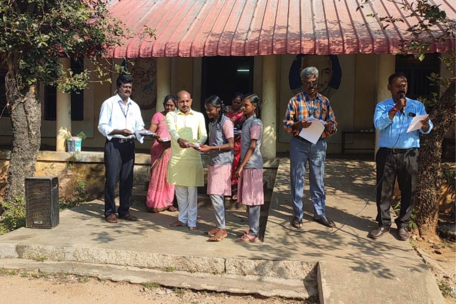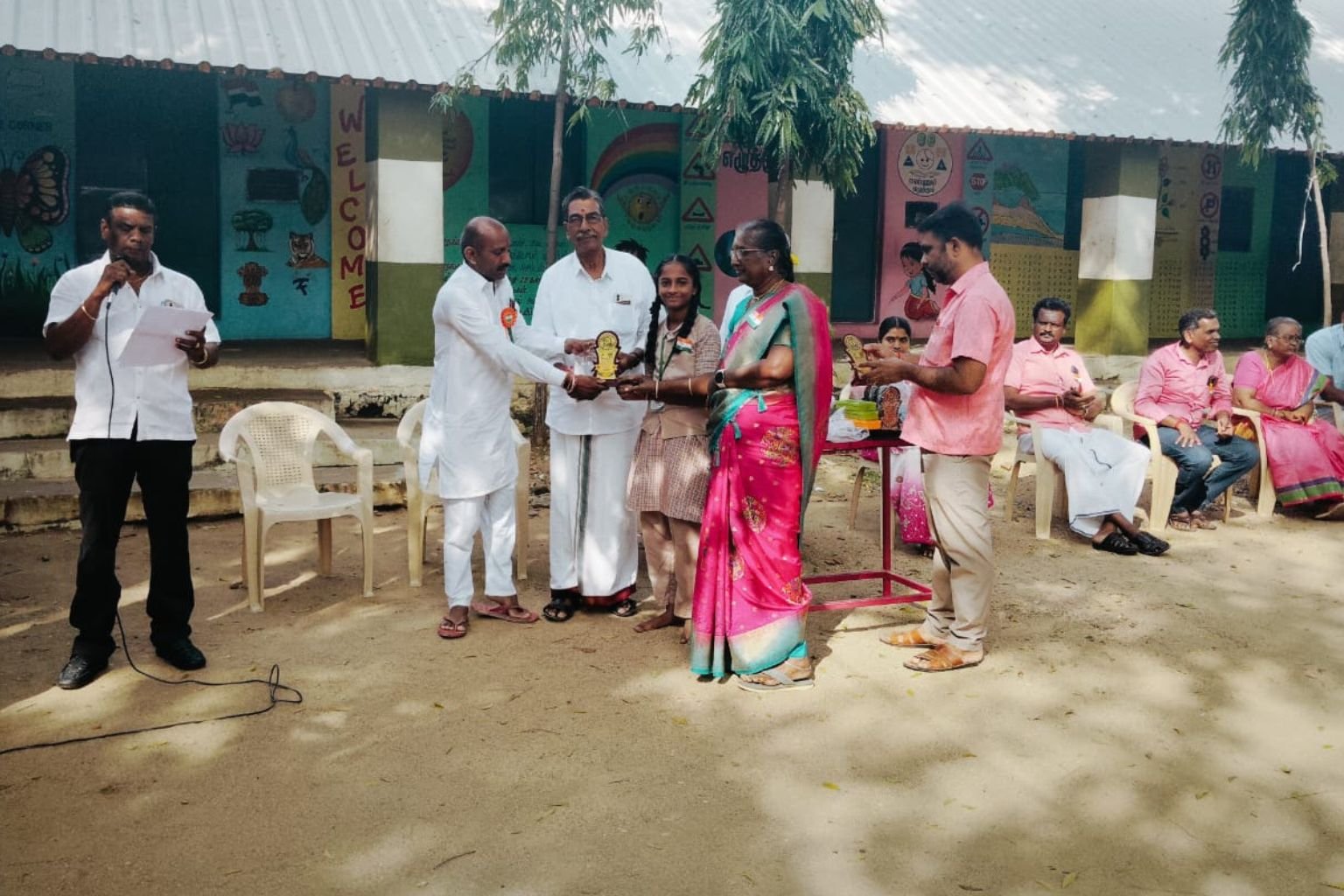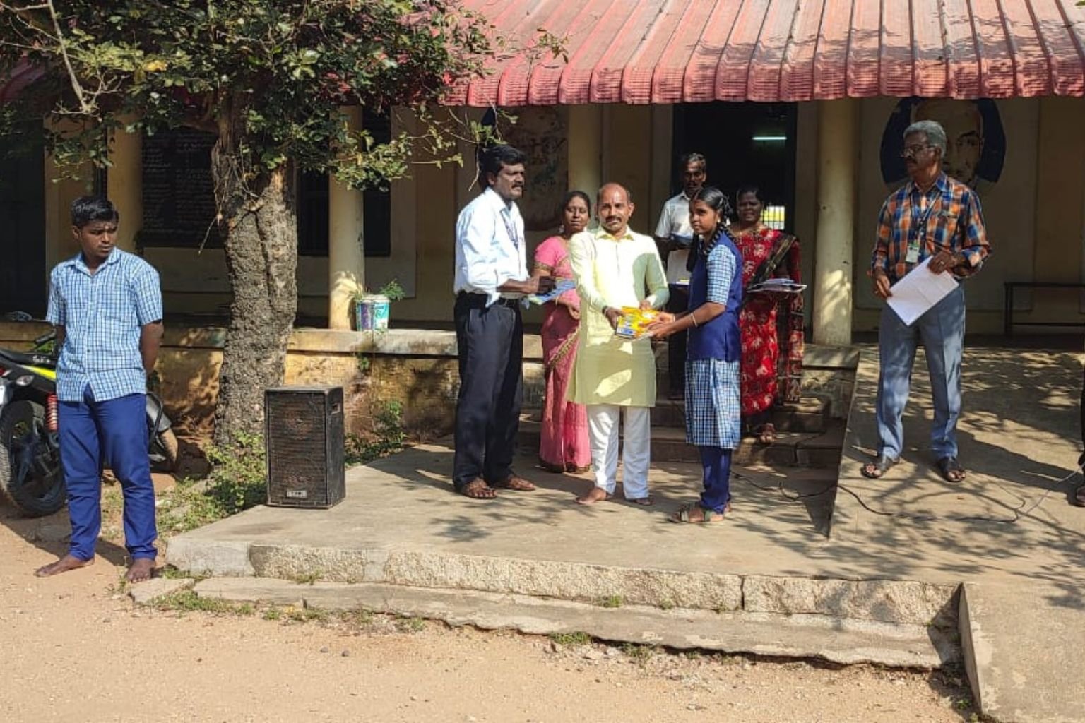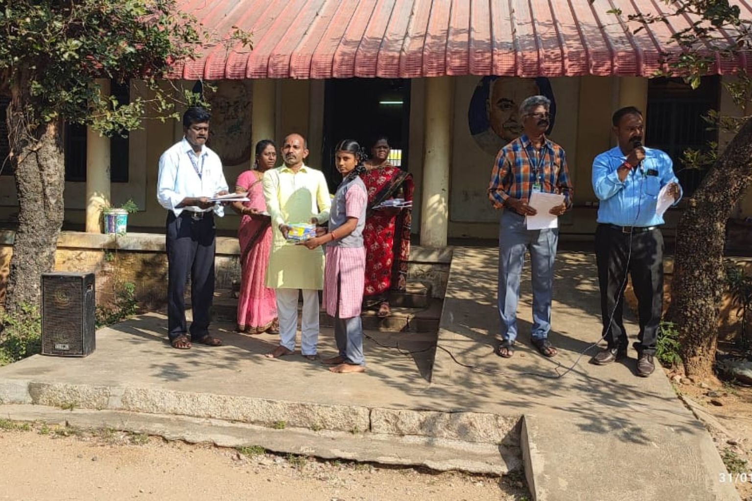 Distributing incentive gifts at Panchayat Union Middle School Onnupuram on 26th January 2024