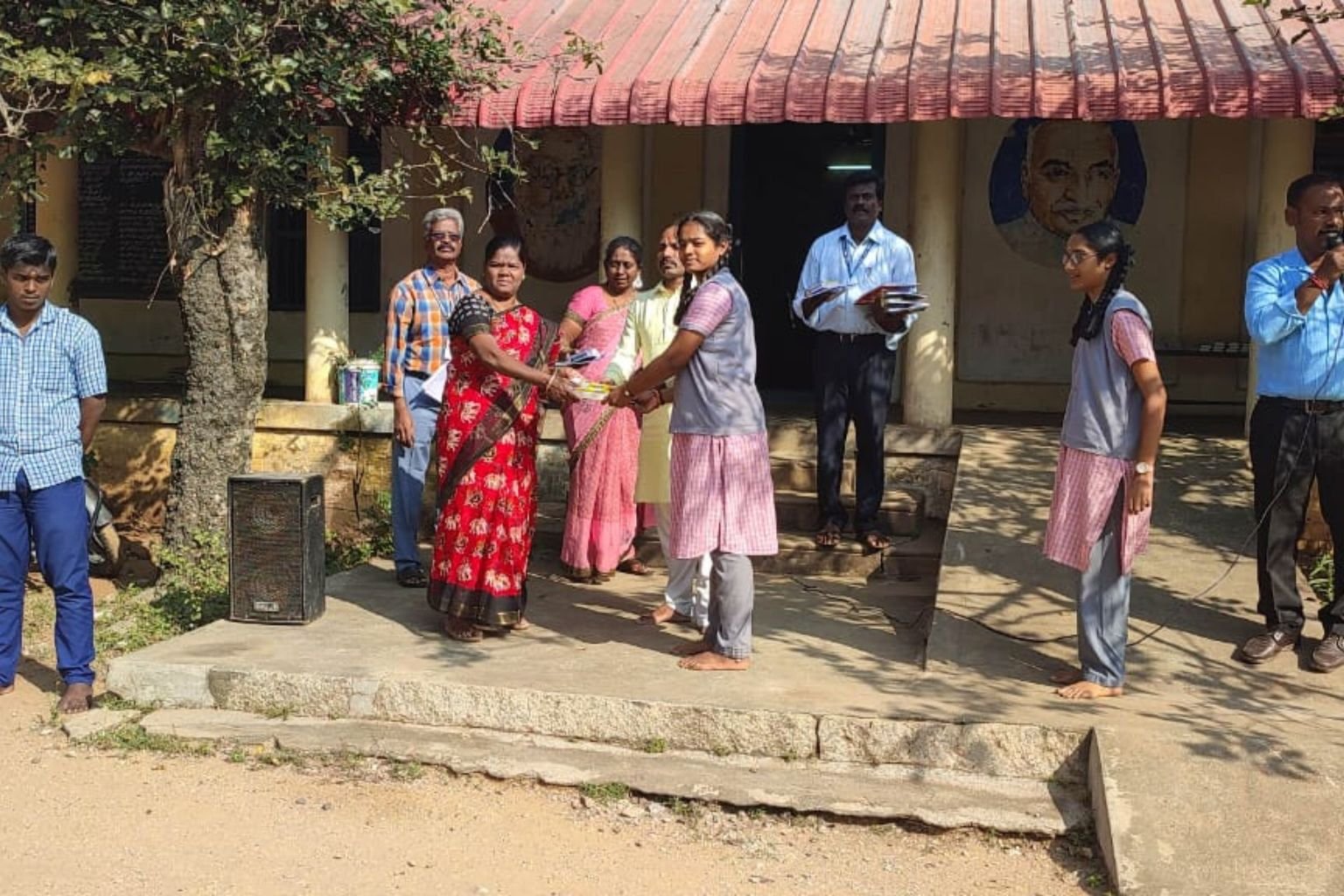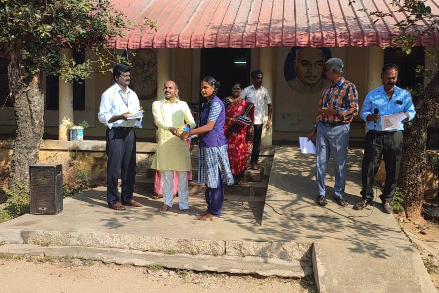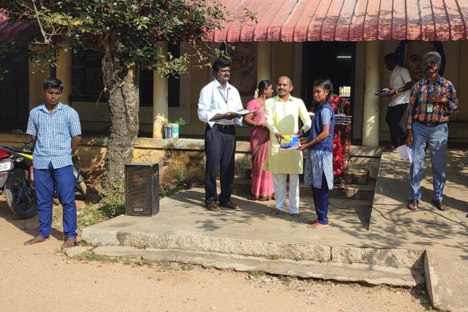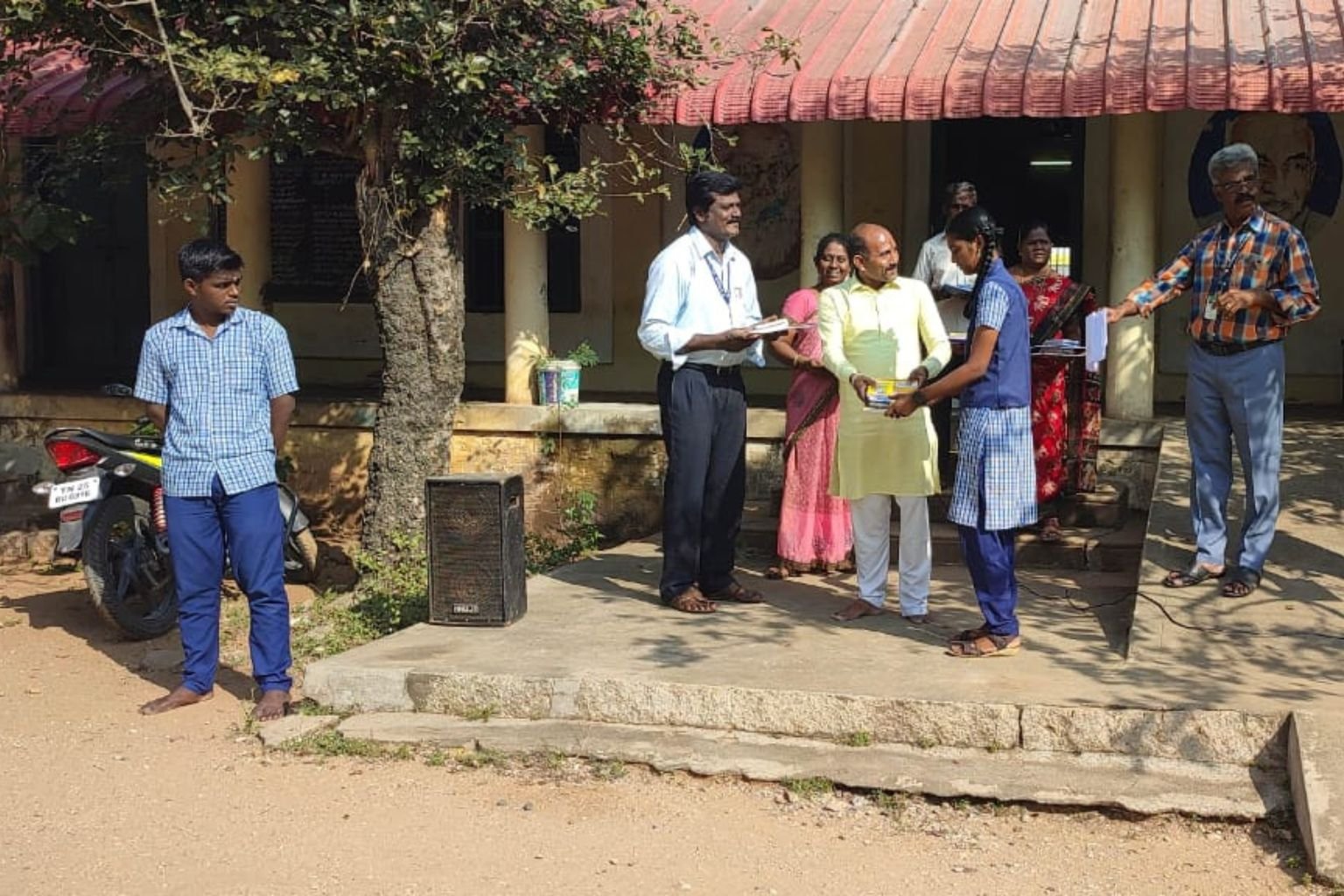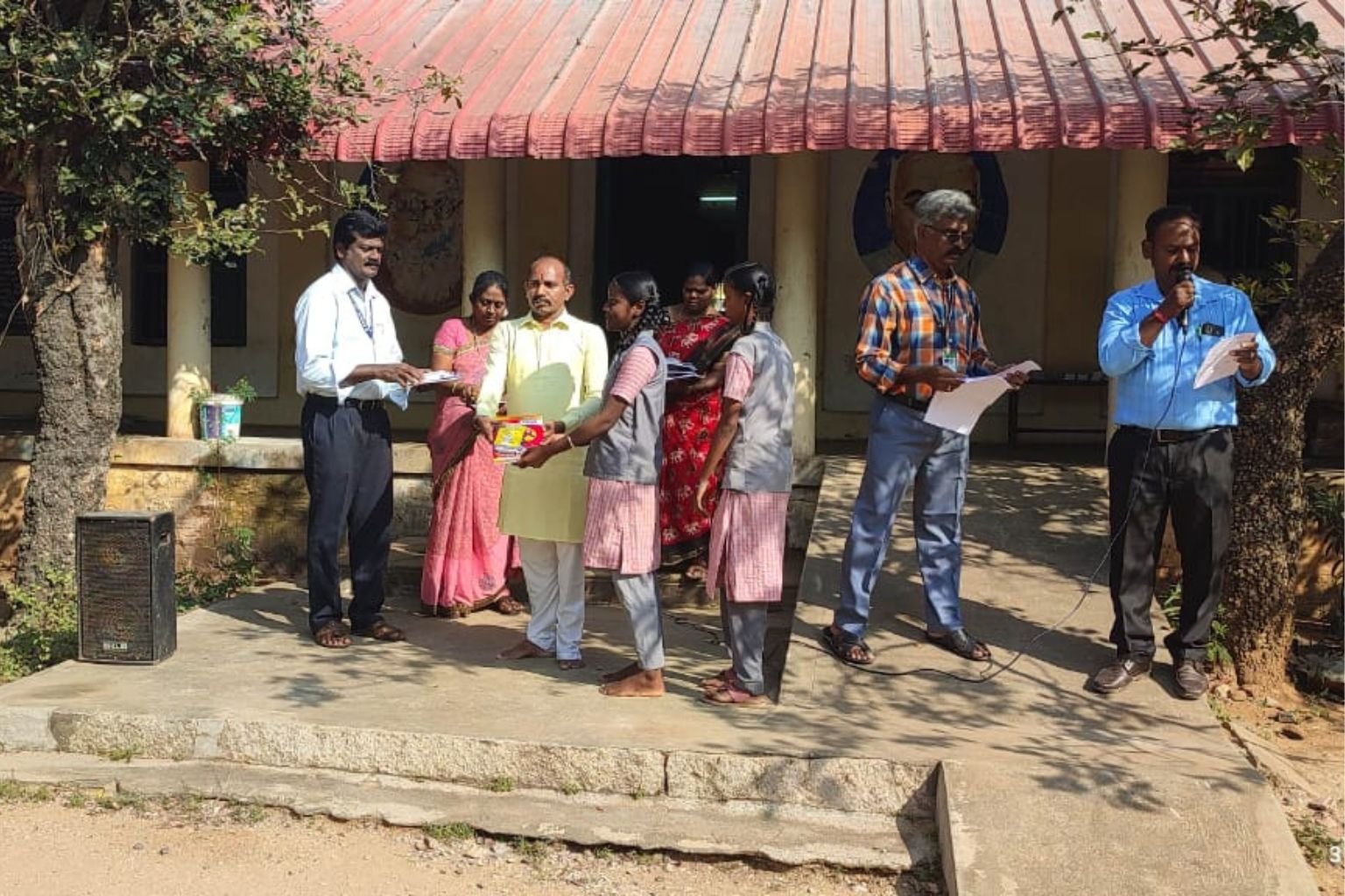 Distributing incentive gifts at Panchayat Union Middle School Onnupuram on 26th January 2024