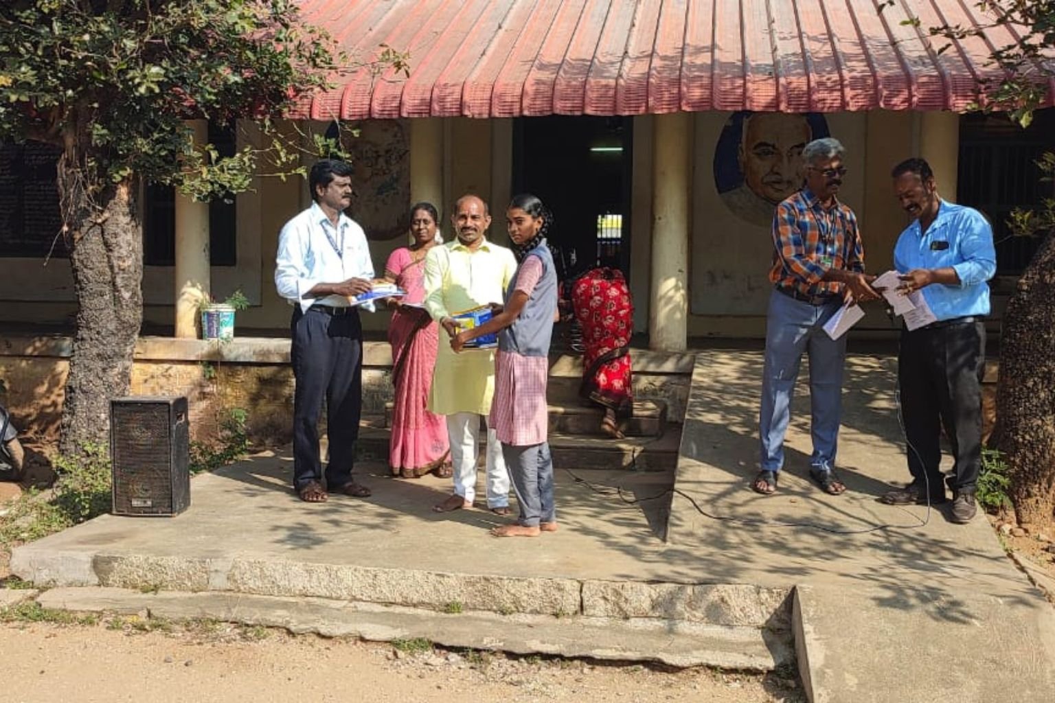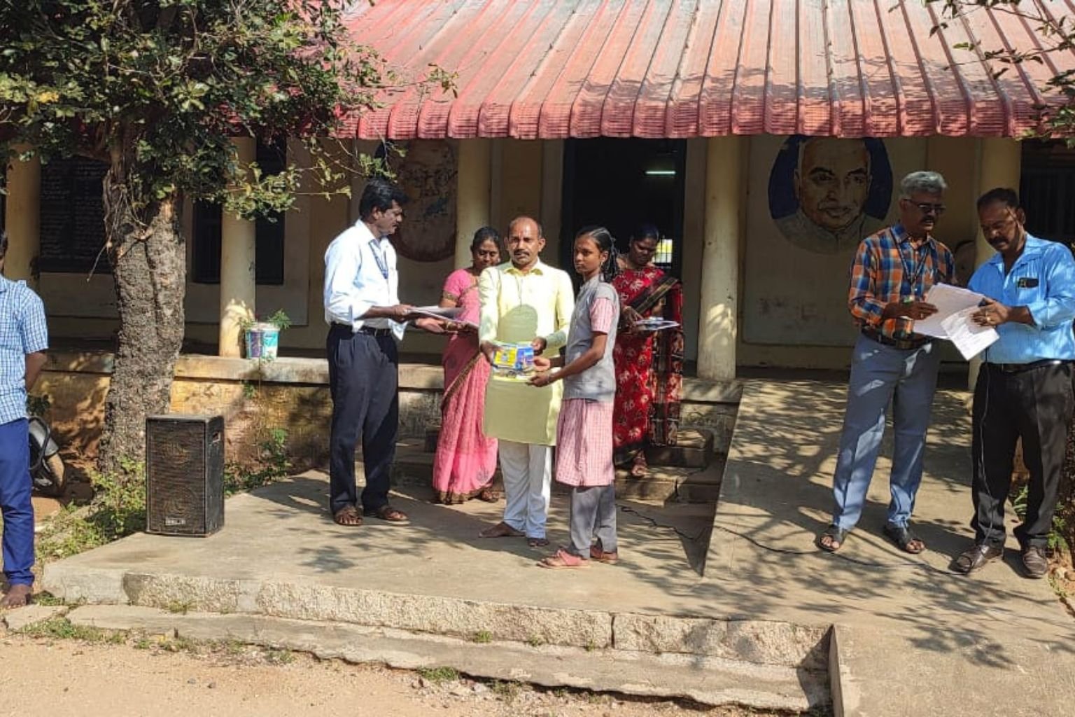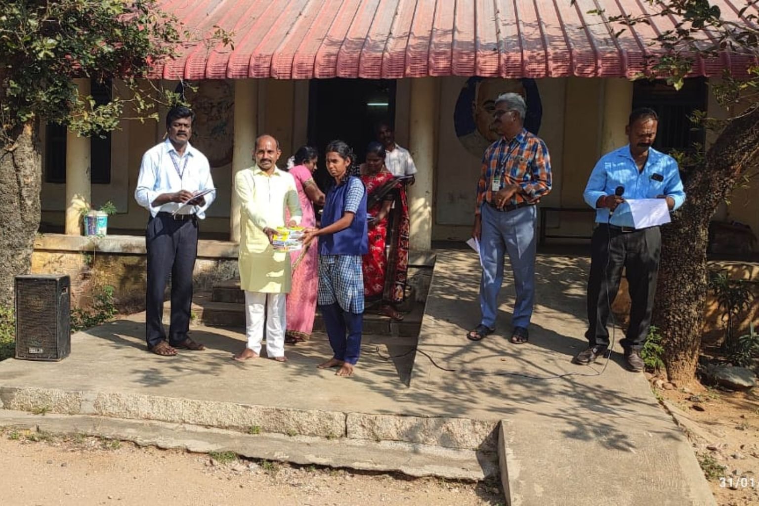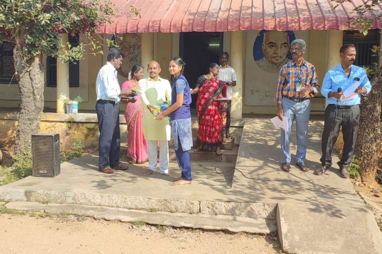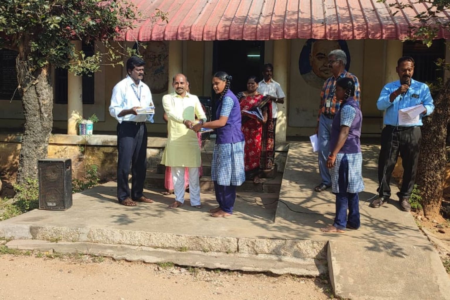 Distributing incentive gifts at Panchayat Union Middle School Onnupuram on 26th January 2024