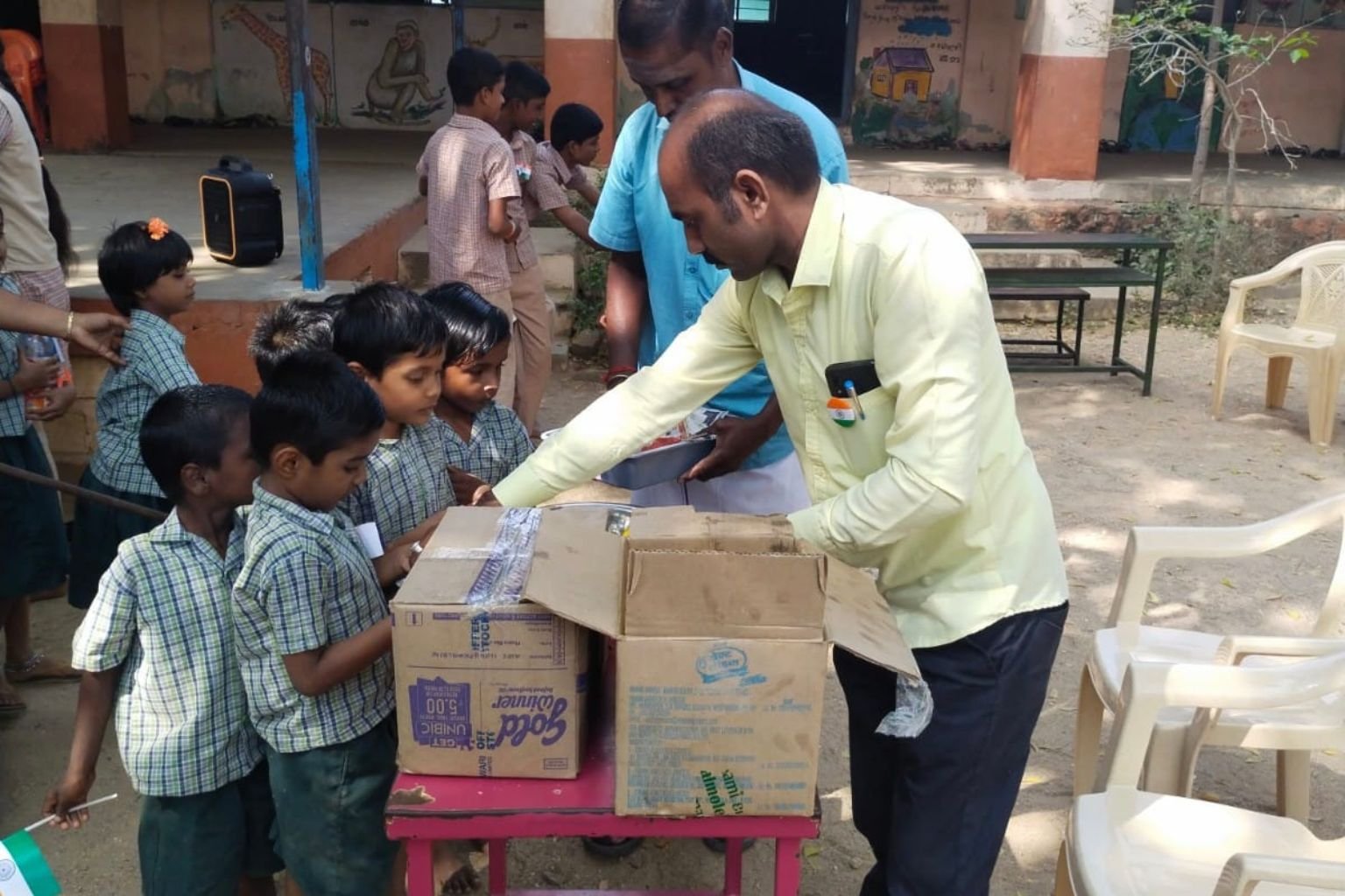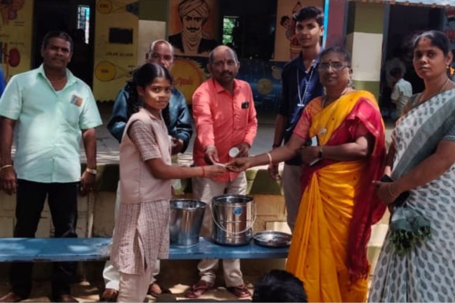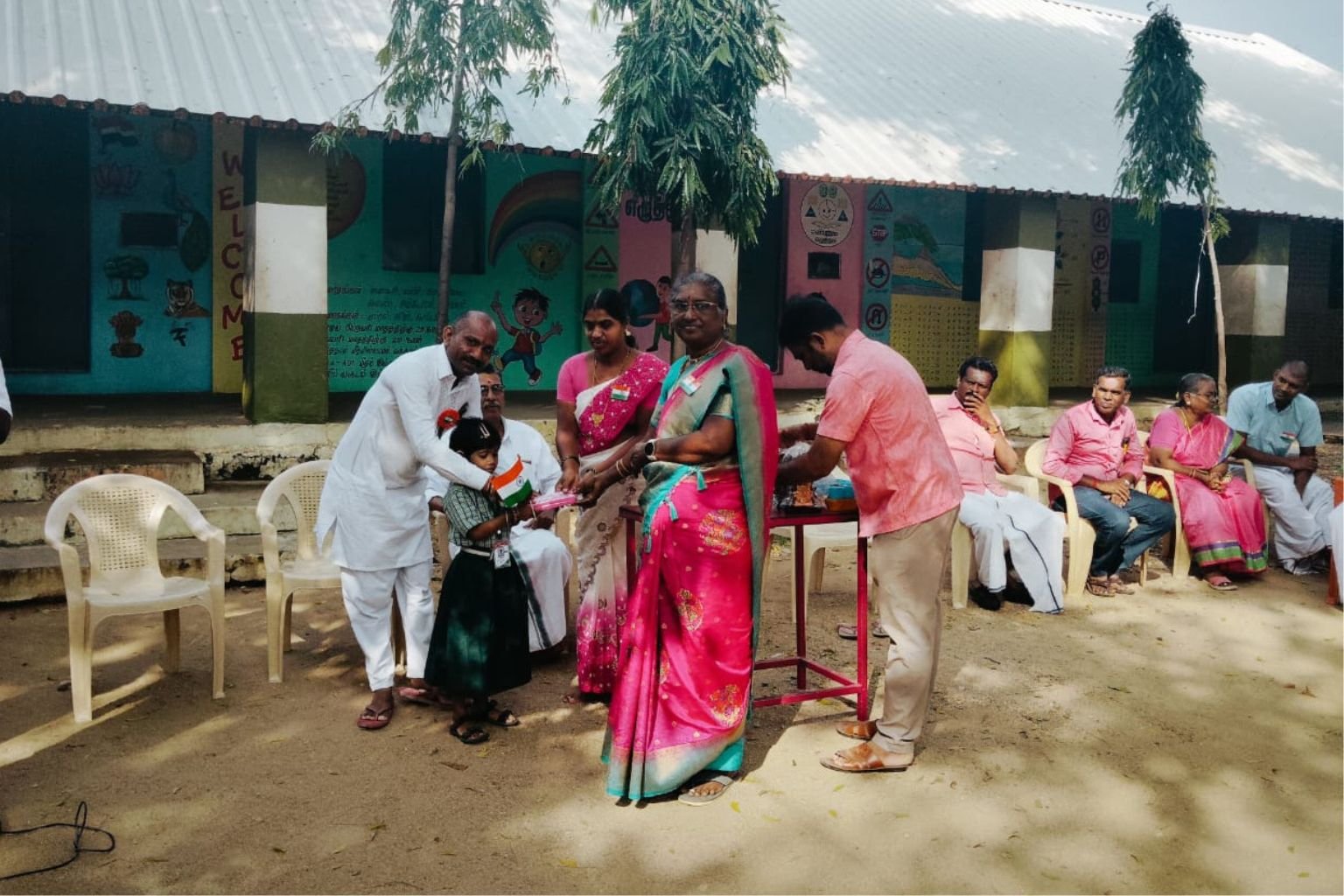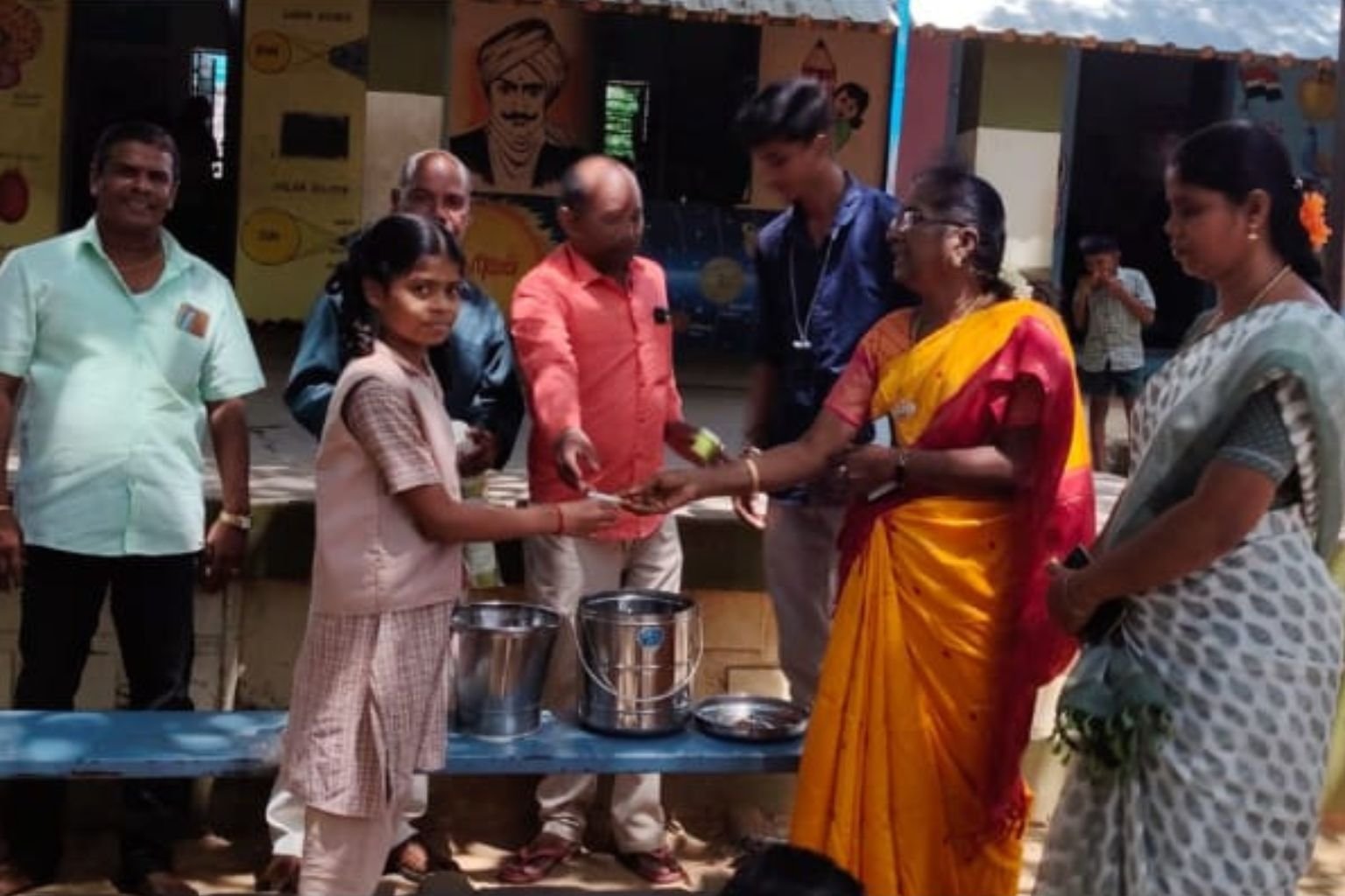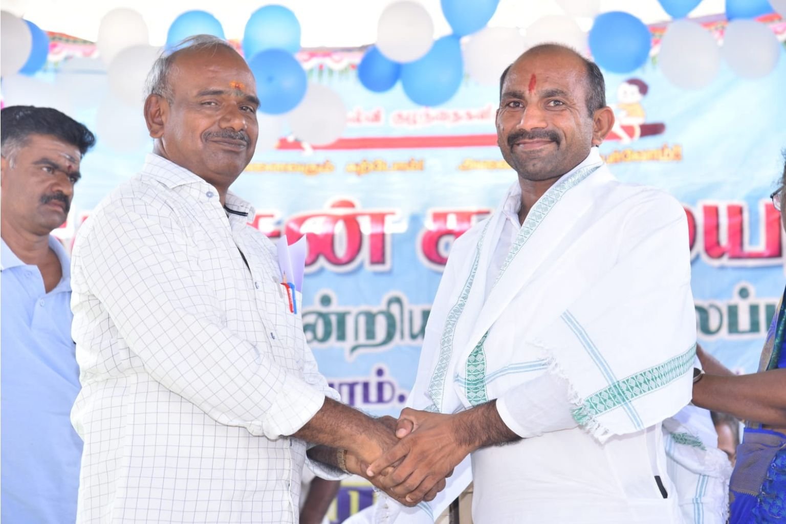 Distributing incentive gifts at Panchayat Union Middle School Onnupuram on 26th January 2024