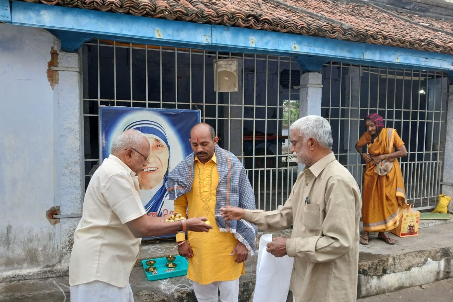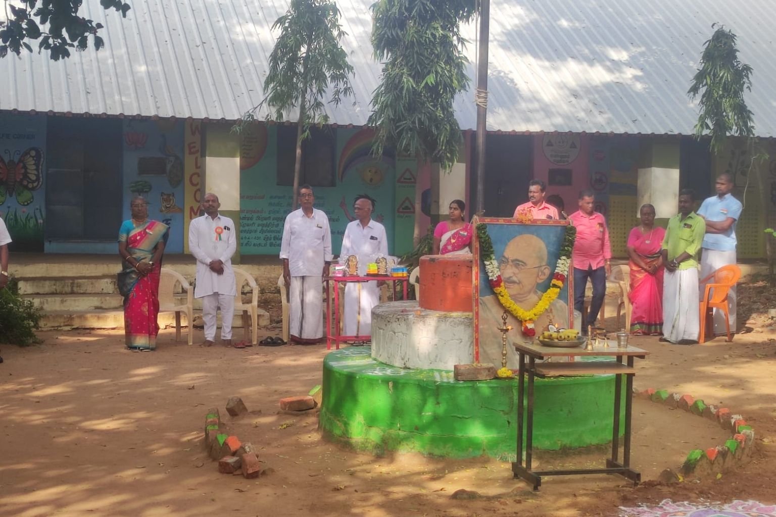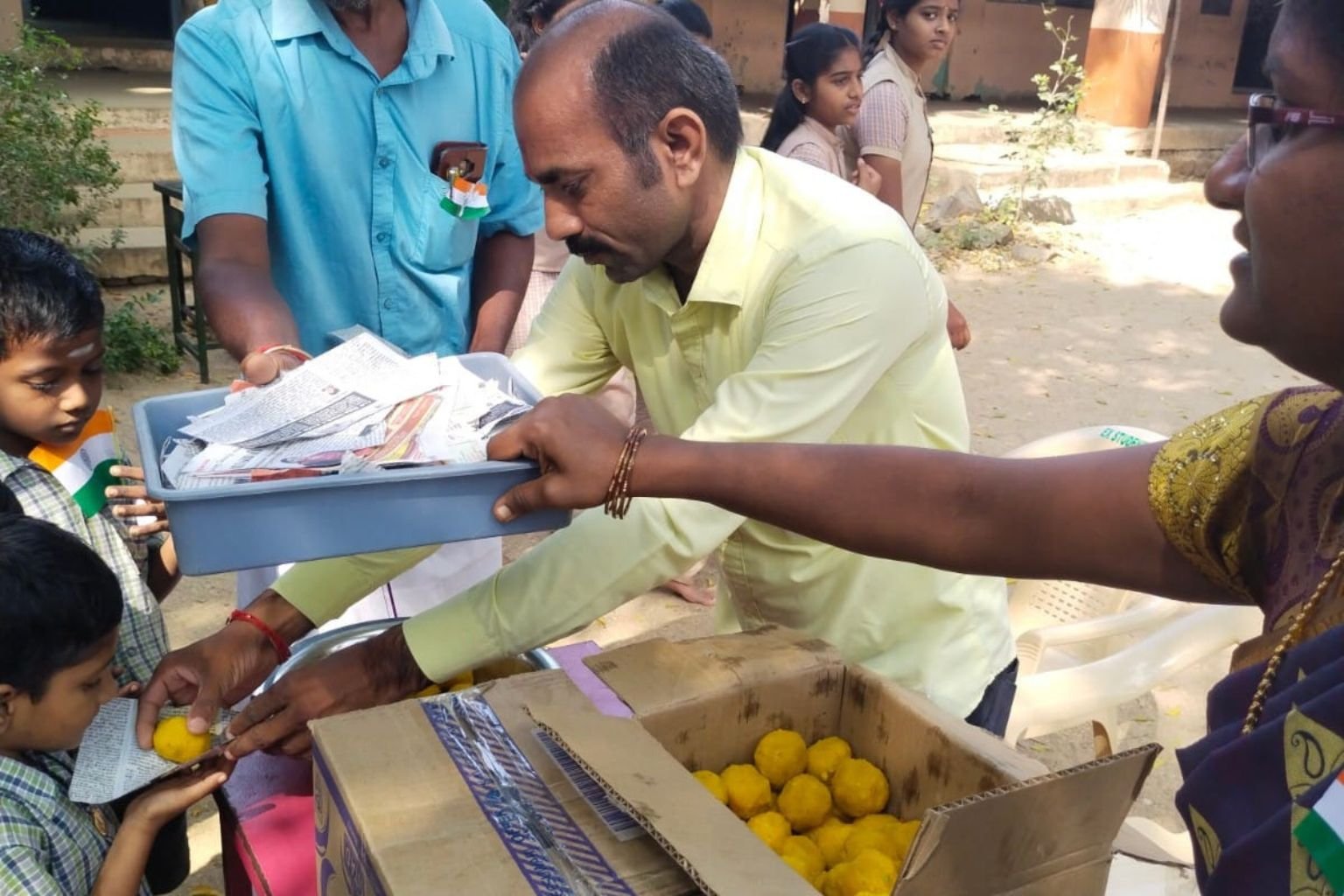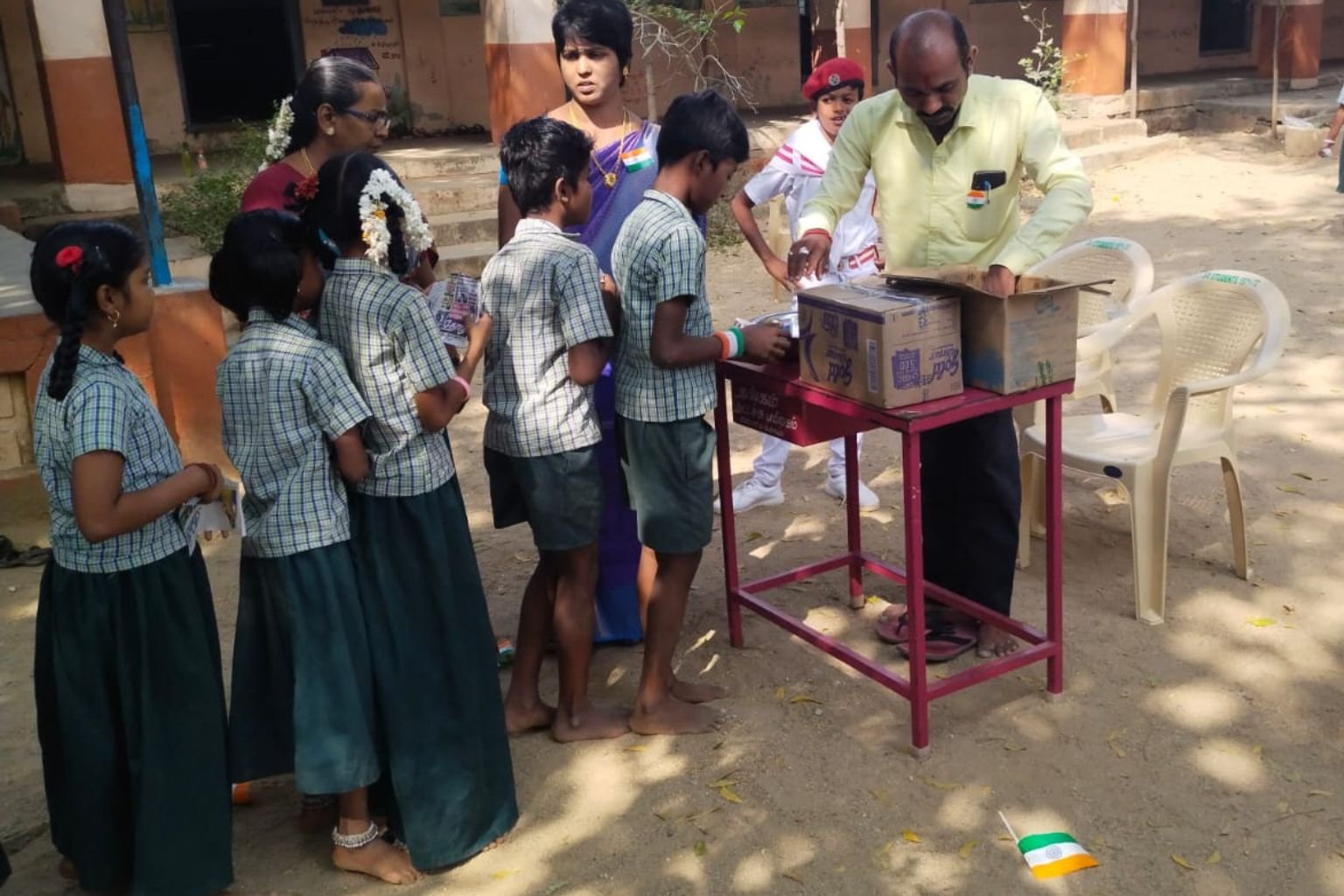 Government Higher Secondary School Onnupuram, on 15th August, giving incentive gifts to the children coming in 1st and 2nd year in the entire school, Founder Acharya Rajendra on behalf of Ragasia Atomic Therapy Health Charitable Trust.