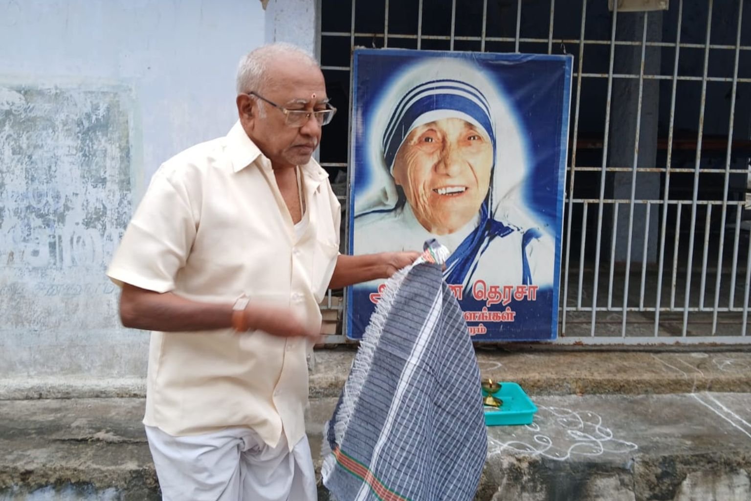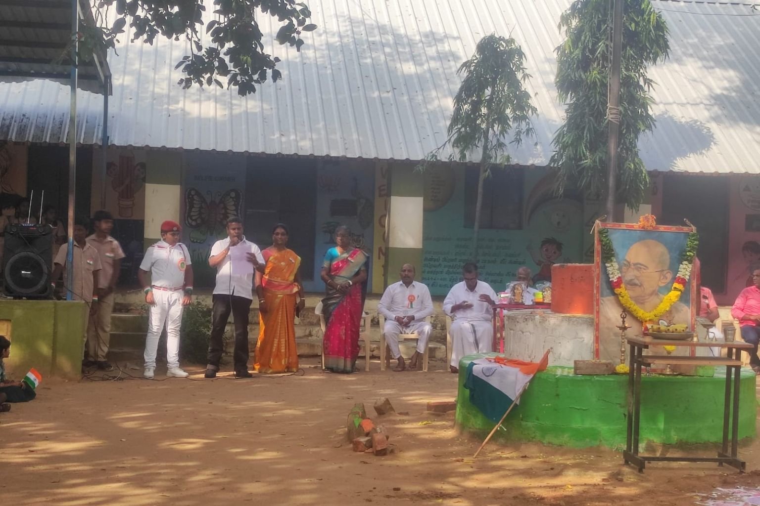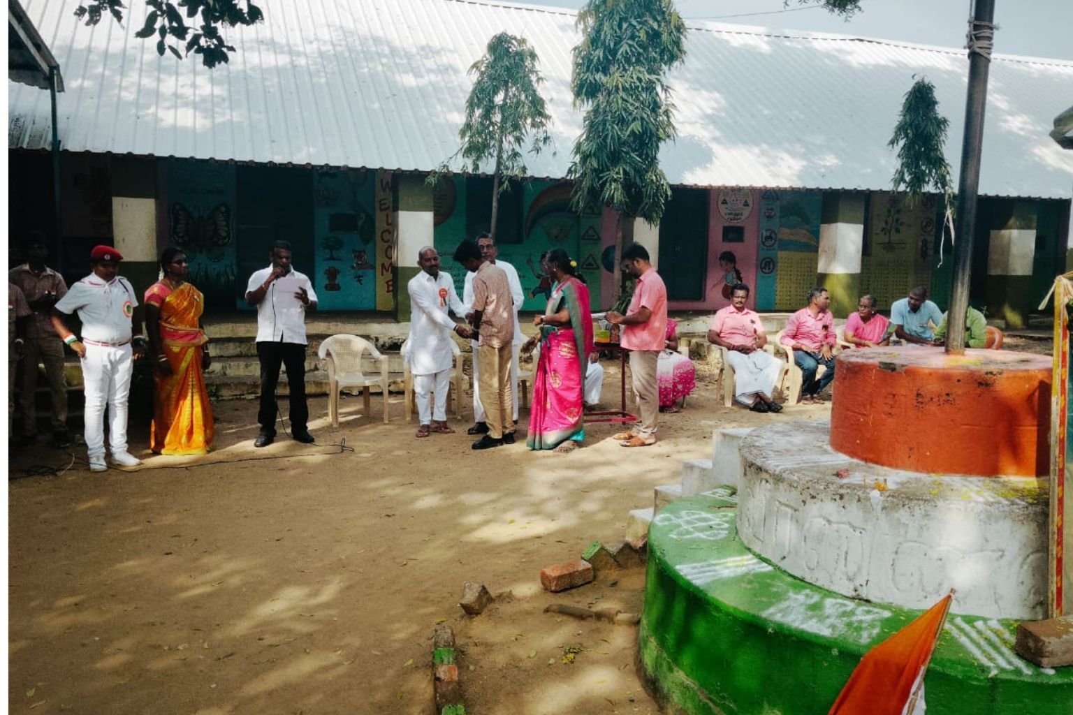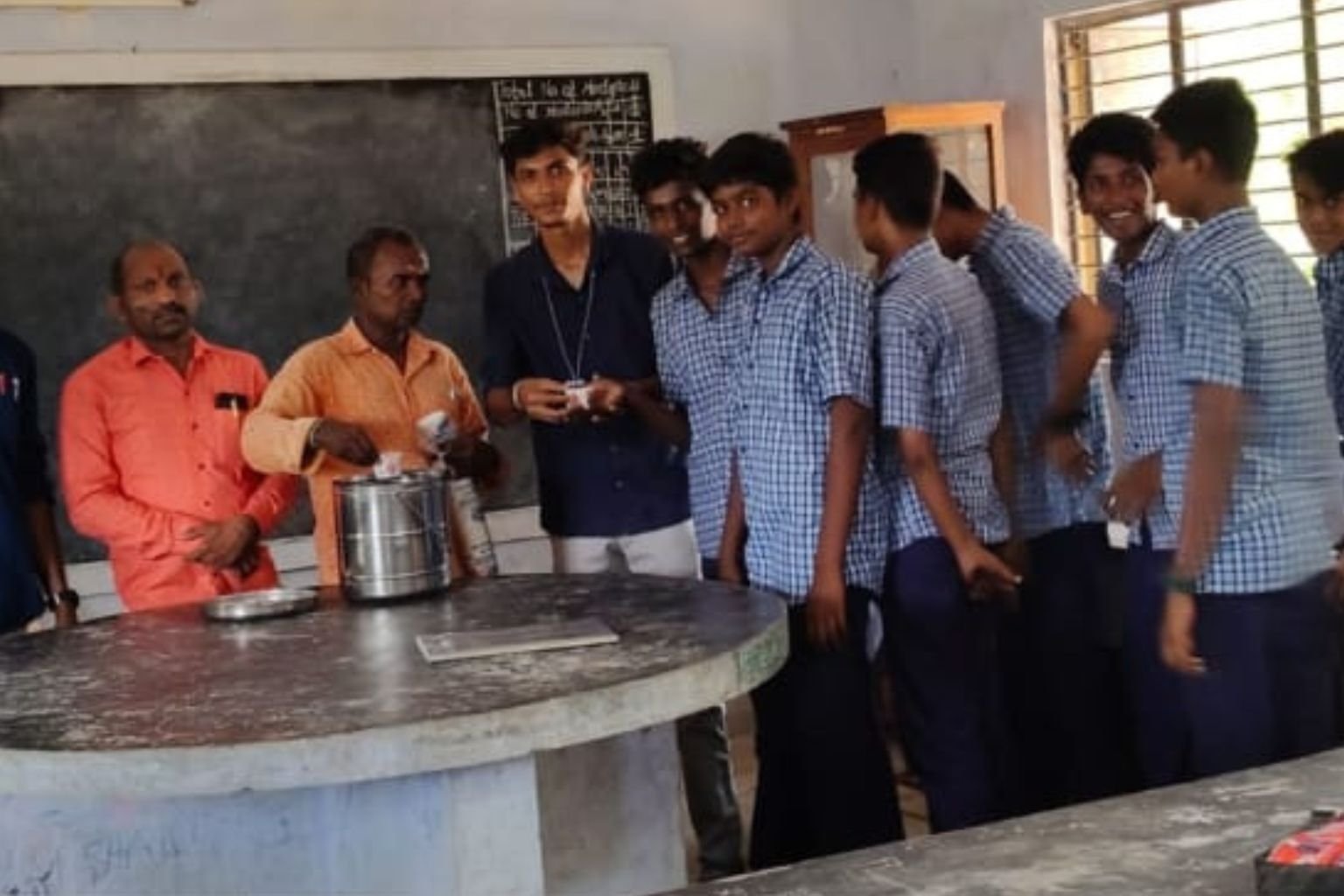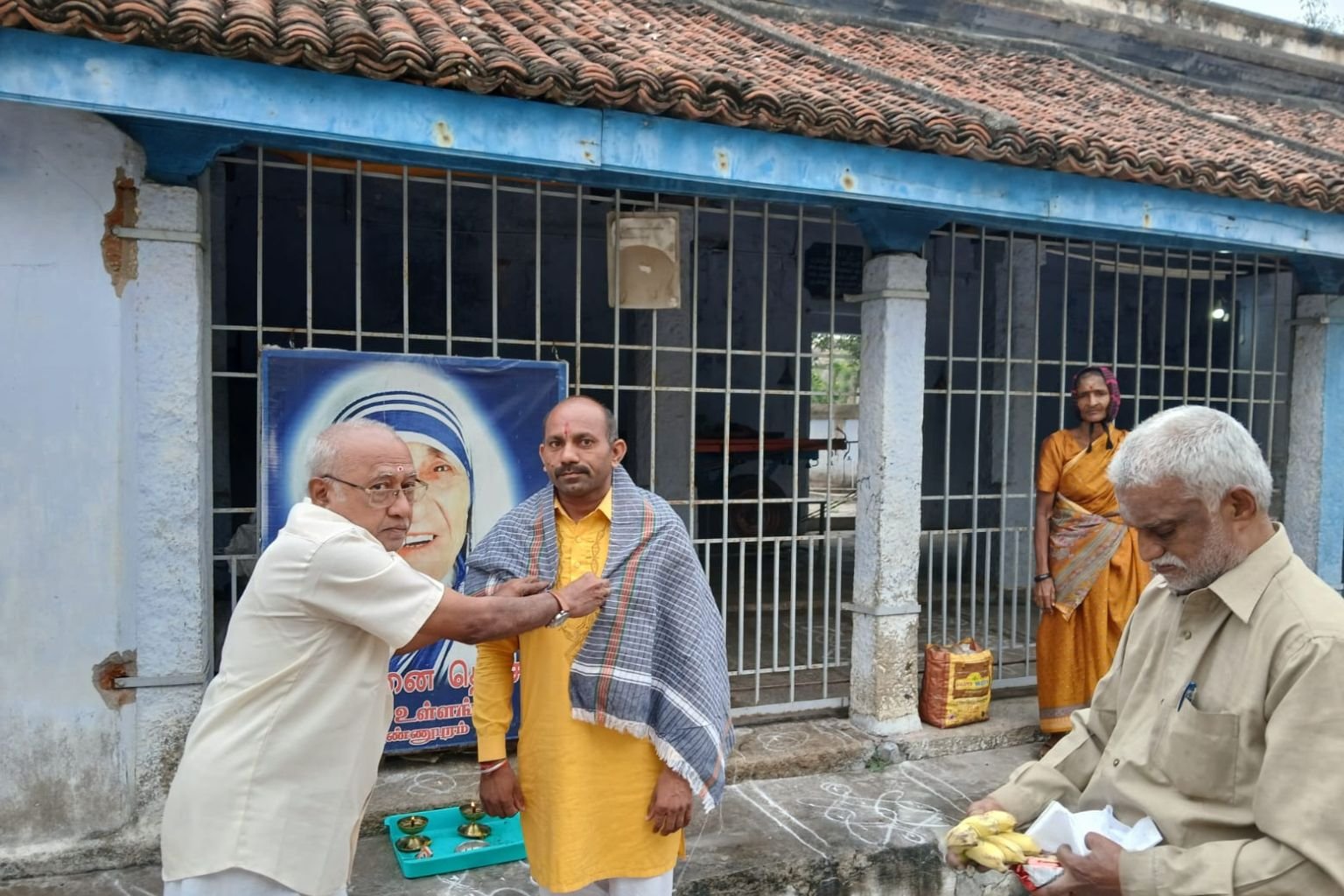 Government Higher Secondary School Onnupuram, on 15th August, giving incentive gifts to the children coming in 1st and 2nd year in the entire school, Founder Acharya Rajendra on behalf of Ragasia Atomic Therapy Health Charitable Trust.